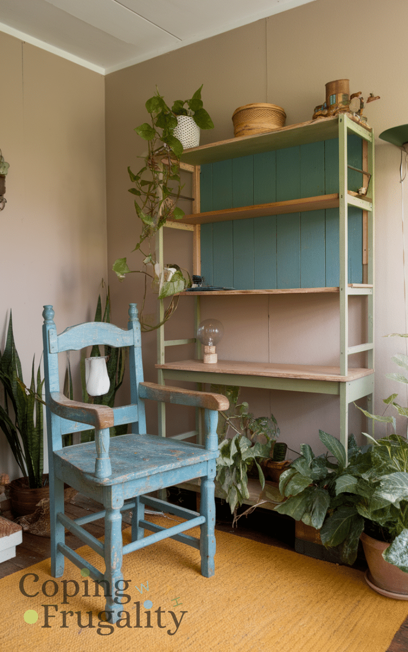 Now I do Thrift Store Makeovers all the time because they are budget-friendly and allow me to create one-of-a-kind pieces and sometimes I transform chairs, lamps, or shelves and even when the colors clash a little or the finish isn’t smooth it still turns out charming and full of character because every piece tells a story.