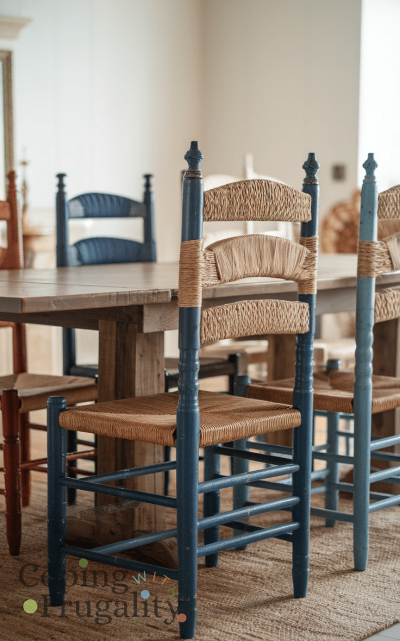 Refurbish old chairs is an amazing thrift store makeover idea on a budget for home decor because you can sand paint or reupholster them and give them a new life and using refurbished chairs adds color texture and personality to your dining room or workspace and it shows that you value creativity and sustainability which enhances your home decor in a thoughtful and stylish way without spending too much money.