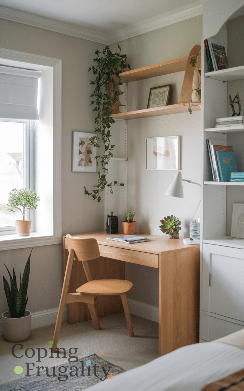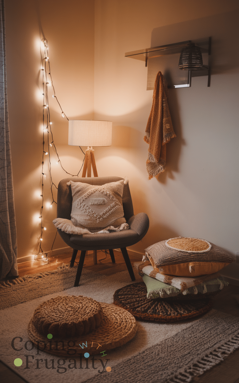 Creating a cozy reading nook with a small chair or floor cushions makes your bedroom feel chic and inviting and adding a lamp or string lights ensures the space feels warm and functional and layering a rug and blankets in the corner enhances comfort and charm and this small budget-friendly setup encourages relaxation and creativity and having a dedicated corner for reading adds personality and coziness to your bedroom decor without requiring expensive furniture.