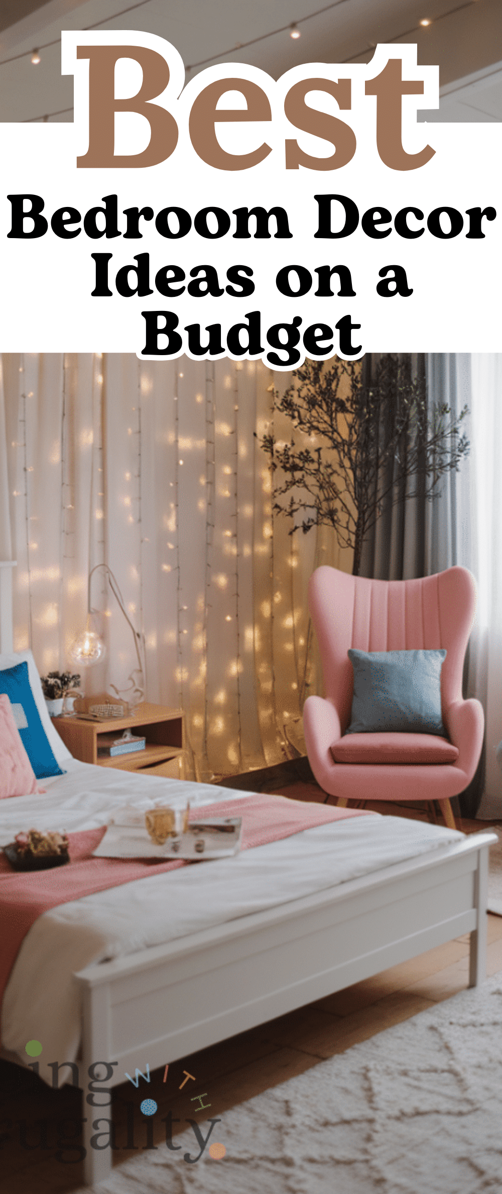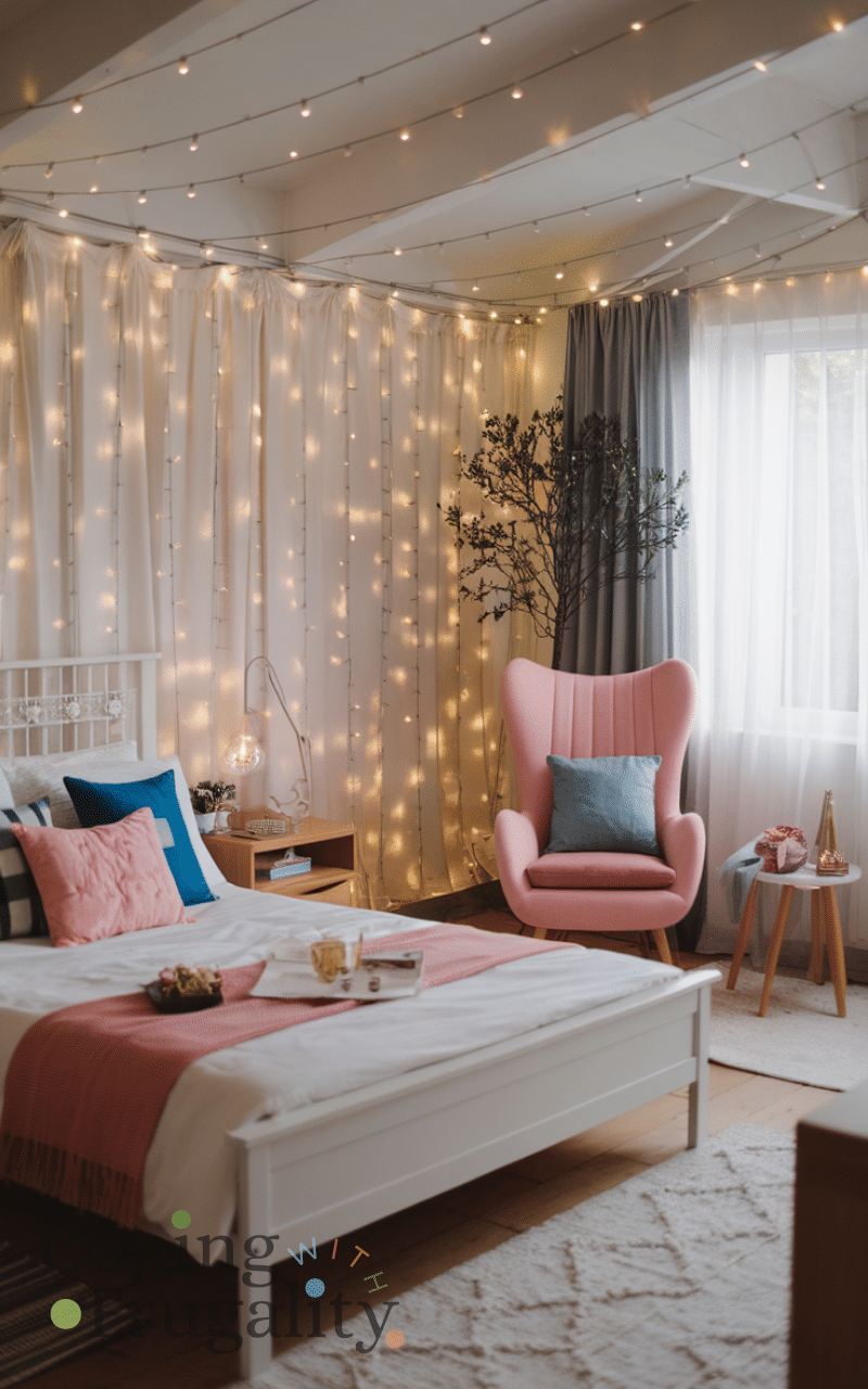 Adding string lights is one of the best ways to make your bedroom cozy and chic on a budget and you can hang them along your walls or drape them around your bed so they give a soft glow that feels magical and relaxing and the warm lighting makes your space feel inviting and charming at the same time and pairing string lights with light curtains or plants can create a dreamy atmosphere that feels both cozy and chic.