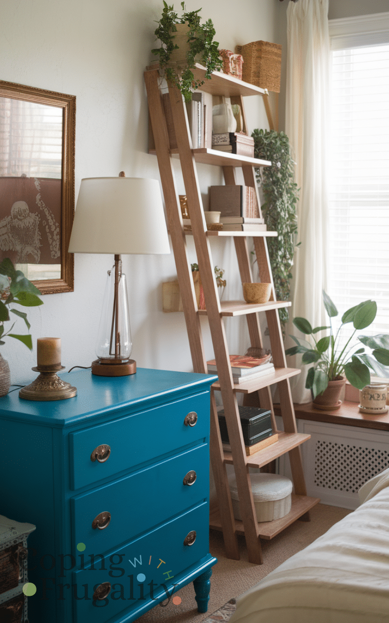 Repurposing old furniture into functional or decorative pieces allows your bedroom decor to feel cozy and chic on a budget and painting a dresser or turning an old ladder into a shelving unit gives your room character and uniqueness and this sustainable approach saves money while adding charm and creativity and combining repurposed pieces with new accents maintains a balanced aesthetic and using items you already have ensures your bedroom decor feels personal and stylish without extra cost.