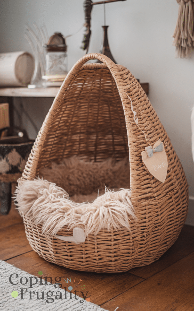 You can take a woven basket and turn it into an adorable DIY pet bed on a budget that looks store-bought because it adds natural beauty to any room and offers a cozy space for your pet to curl up in and you just need to line it with a fluffy cushion or blanket and maybe tie a small bow or tag with your pet’s name for extra style and the basket can be found easily at thrift stores or in your own home which makes this idea affordable and simple and it suits cats and small dogs who enjoy enclosed spaces and it looks elegant as if it came from a boutique store.