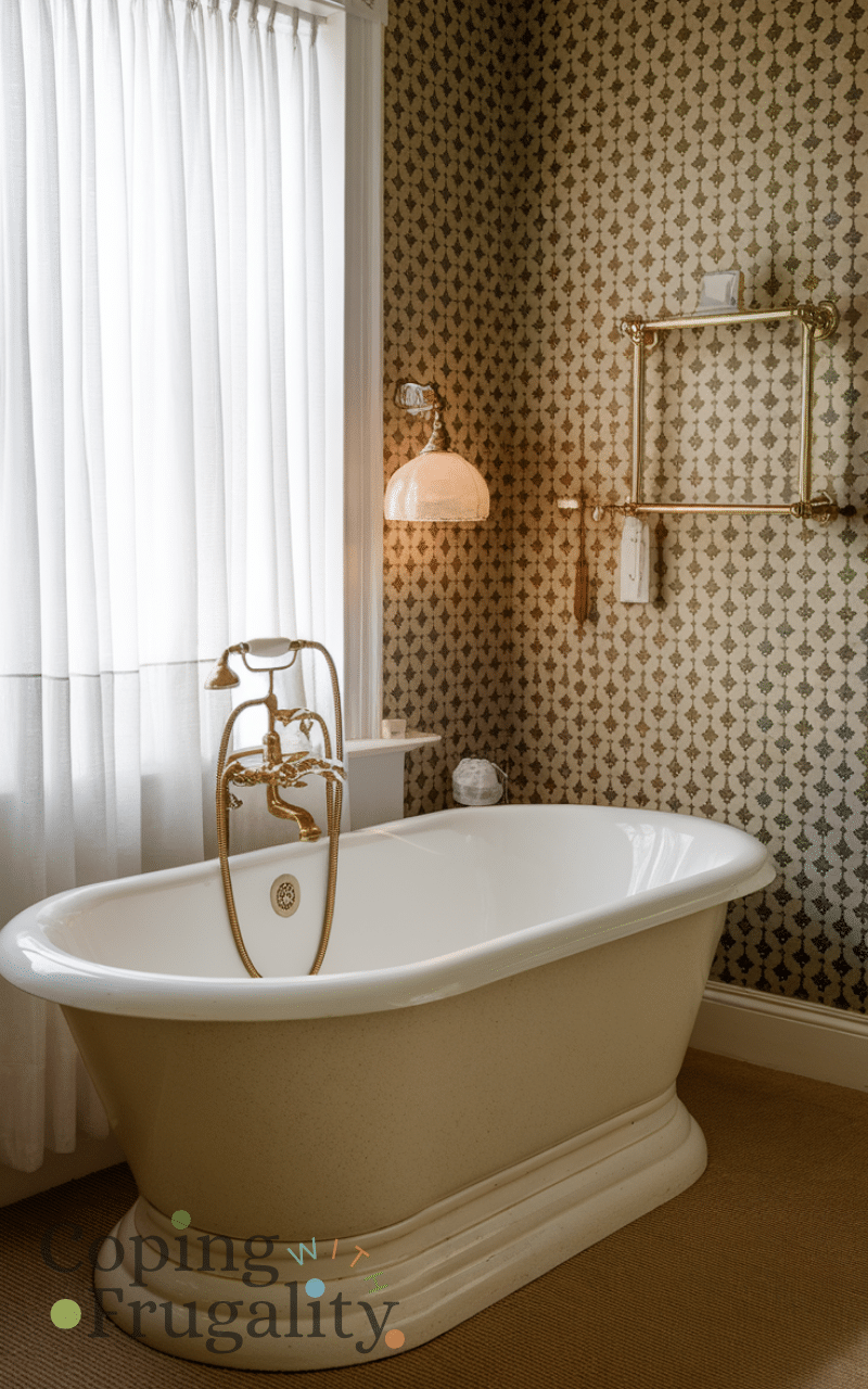 A freestanding bathtub creates a strong focal point that completes Retro Bathroom Decor beautifully, this classic feature reflects traditional bathroom elegance while also offering comfort and relaxation every day, placing the tub near natural light or decorative tiles helps highlight its shape and presence inside the space, combining it with brass fixtures or patterned wallpaper strengthens the nostalgic atmosphere naturally, and this centerpiece transforms your Retro Bathroom Decor into a luxurious retreat that feels timeless and inviting.