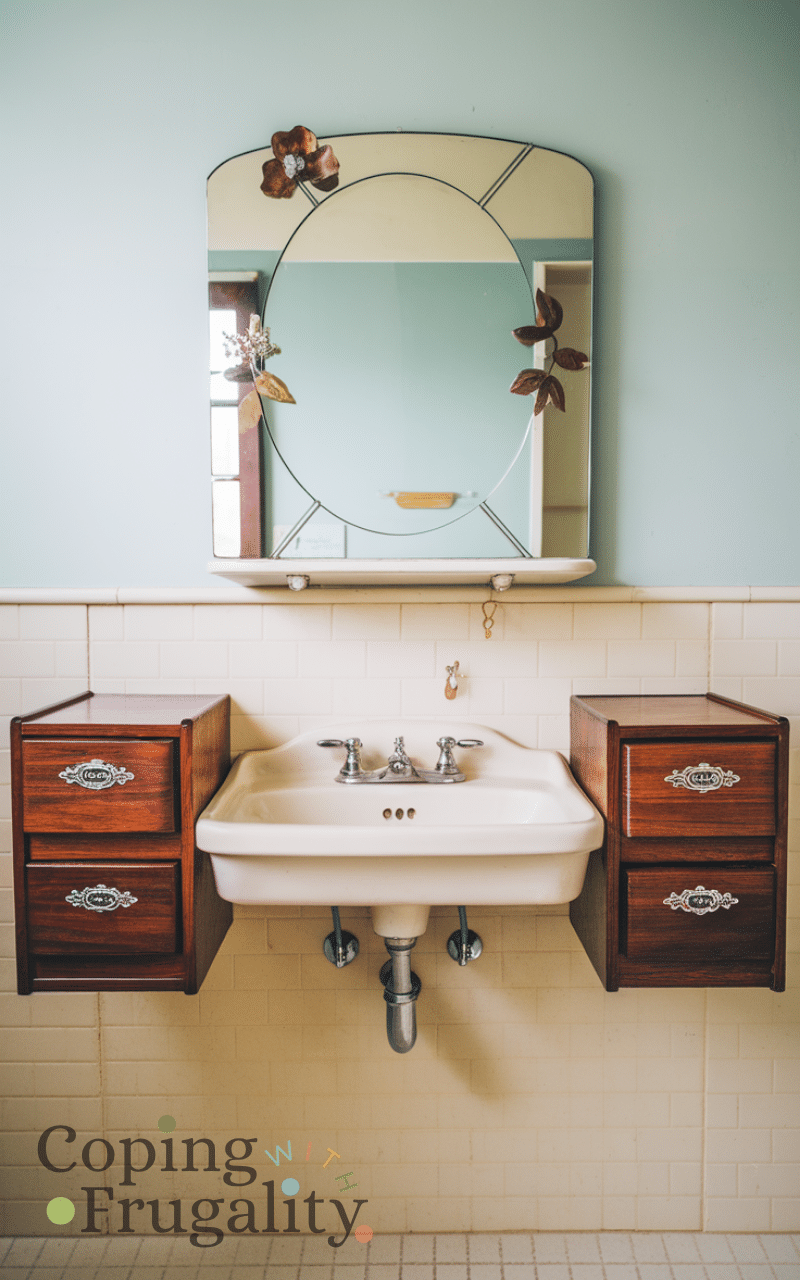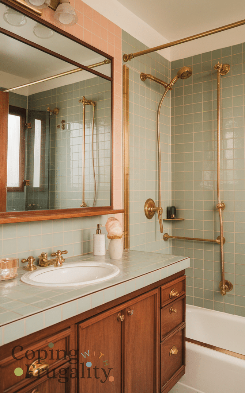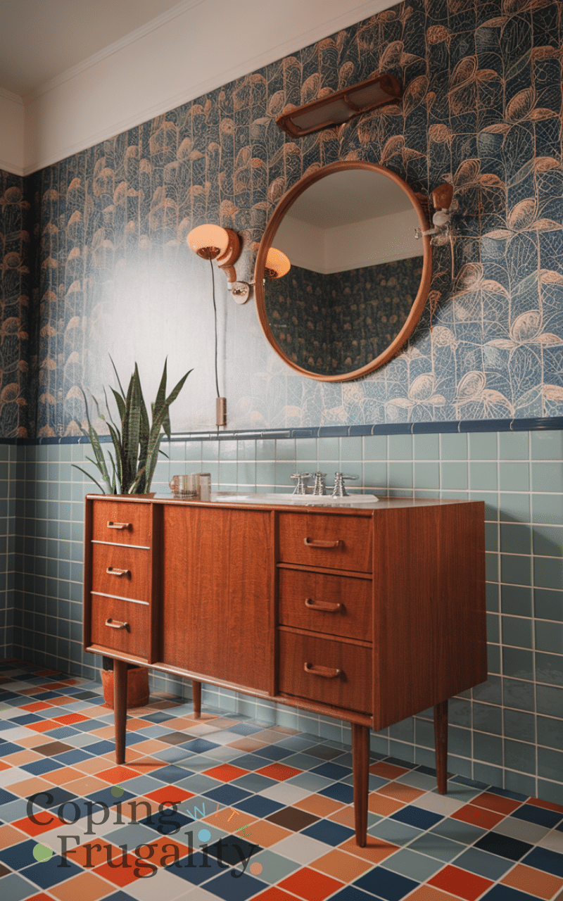 Rounded mirrors are simple additions that instantly soften the look of Retro Bathroom Decor, their curved shape contrasts nicely with square tiles and straight cabinets which creates visual harmony across the space, they also reflect light beautifully which makes small bathrooms appear larger and brighter, choosing mirrors with thin metal frames or vintage edges strengthens the retro character while still keeping the design modern and practical, and this makes rounded mirrors one of the easiest upgrades you can add to improve your Retro Bathroom Decor quickly and effectively.