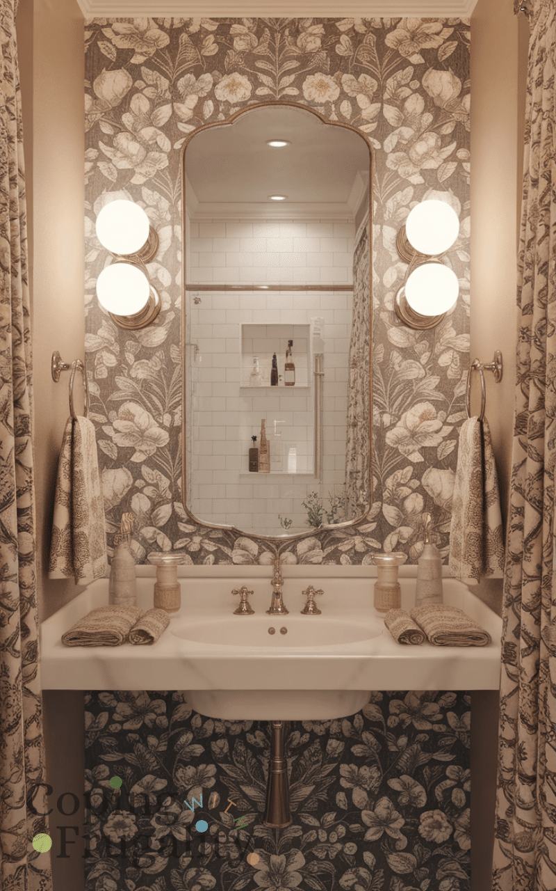 Patterned wallpaper with floral or geometric prints adds strong personality to Retro Bathroom Decor, especially when used on one feature wall behind the sink or bathtub area because it creates a charming focal point that captures attention immediately, vintage inspired wallpaper works beautifully with soft lighting and neutral fixtures which keeps the space balanced and comfortable, and when combined with matching accessories like towels or curtains it helps create a complete Retro Bathroom Decor theme that feels stylish, warm, and thoughtfully designed without making the bathroom look crowded.