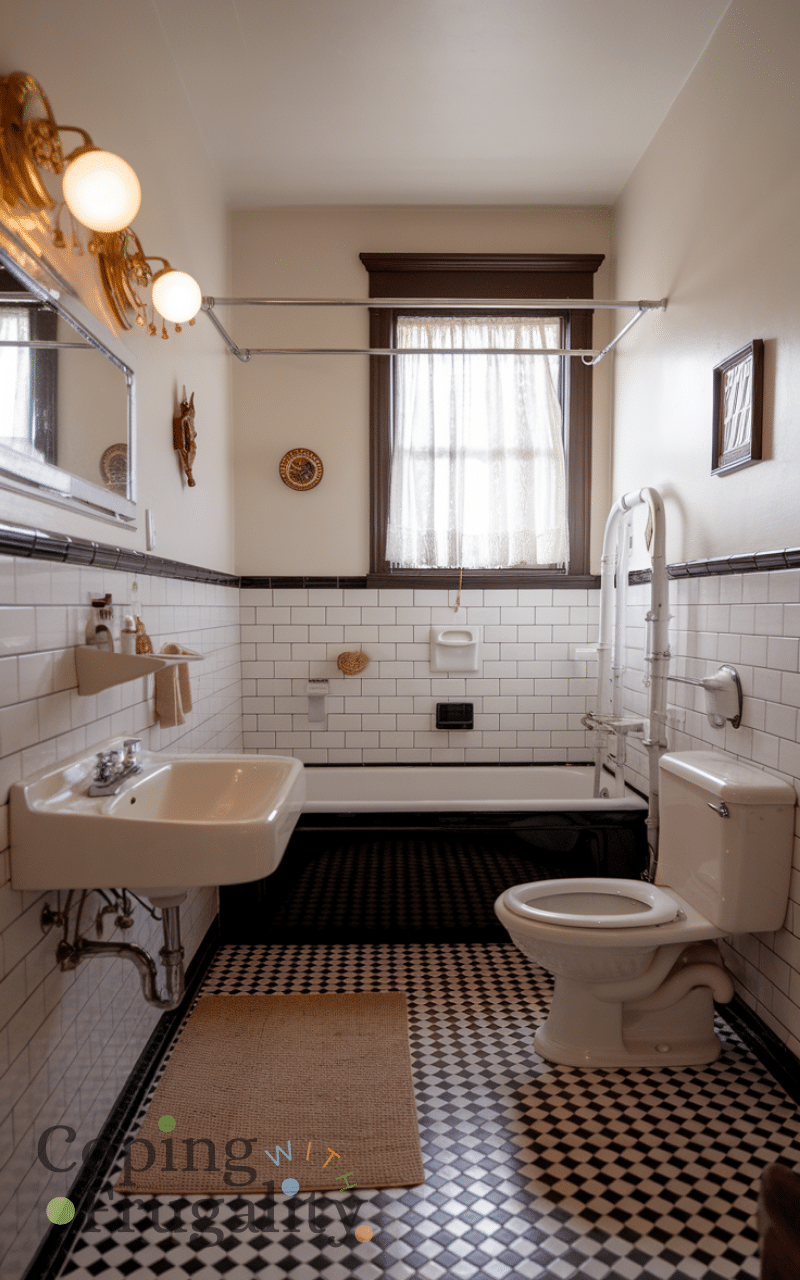 Adding checkerboard flooring instantly gives Retro Bathroom Decor a classic vintage identity that feels elegant and playful at the same time, especially when you combine black and white tiles or pastel color combinations that reflect mid-century charm, this flooring style creates visual movement across the space and works beautifully with both modern and antique fixtures, it also helps define the bathroom as a stylish feature area instead of just a functional room, and when paired with simple cabinets and soft lighting the checkerboard pattern becomes the centerpiece that makes your Retro Bathroom Decor feel authentic and welcoming.