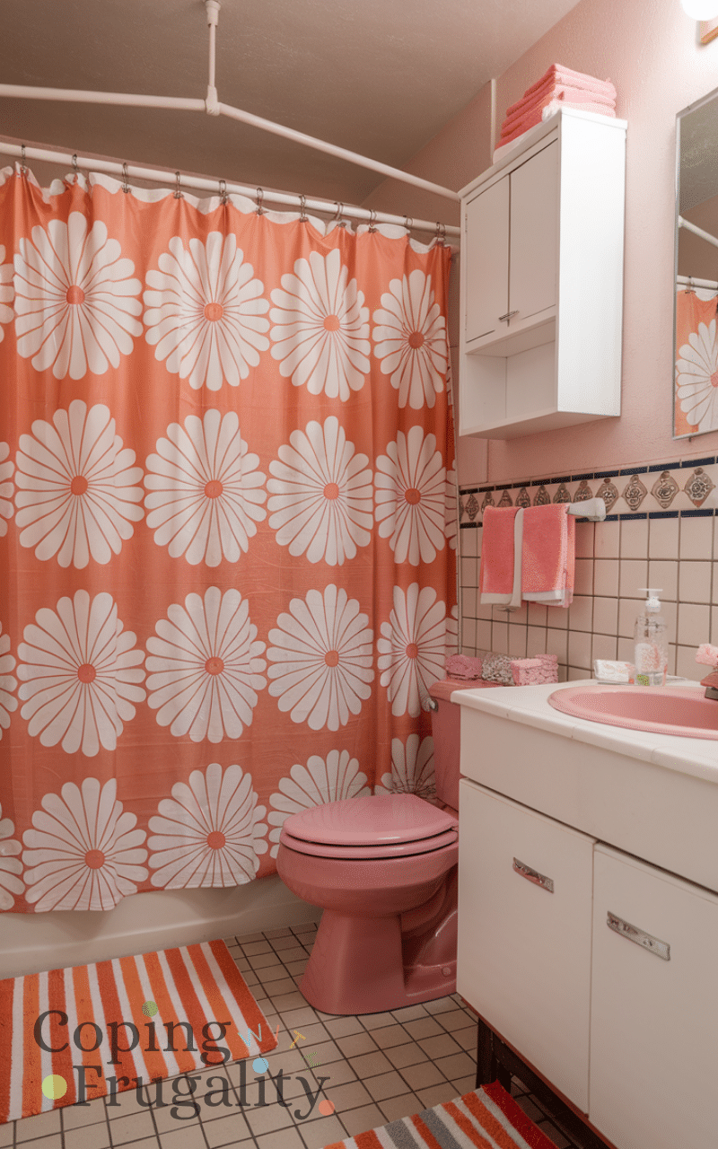 Patterned shower curtains are easy upgrades that instantly improve Retro Bathroom Decor, choosing floral prints, geometric shapes, or pastel stripes helps define the retro theme clearly while keeping the bathroom lively and cheerful, these curtains also allow you to change the look of the space quickly whenever needed without expensive renovations, matching curtain colors with towels or rugs creates visual harmony across the bathroom which helps your Retro Bathroom Decor feel balanced and beautifully coordinated.