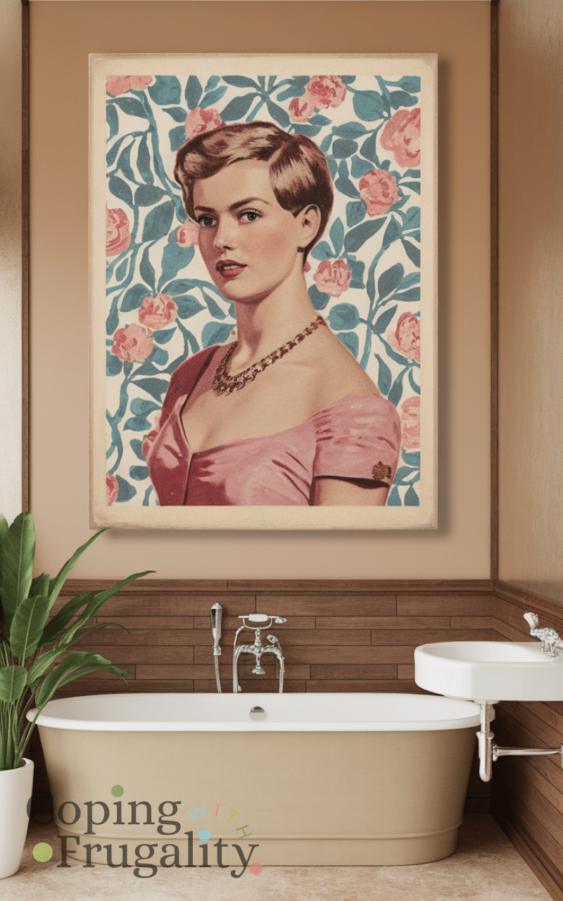 Framed vintage artwork adds storytelling charm to Retro Bathroom Decor, especially when you choose classic advertisement posters or floral prints inspired by earlier decades because they create emotional warmth inside the space, artwork helps connect walls with accessories while making the bathroom feel more personal and inviting, selecting frames with soft metallic finishes or wooden textures strengthens the retro atmosphere naturally, and this simple addition makes your Retro Bathroom Decor feel creative and unique without requiring major changes.