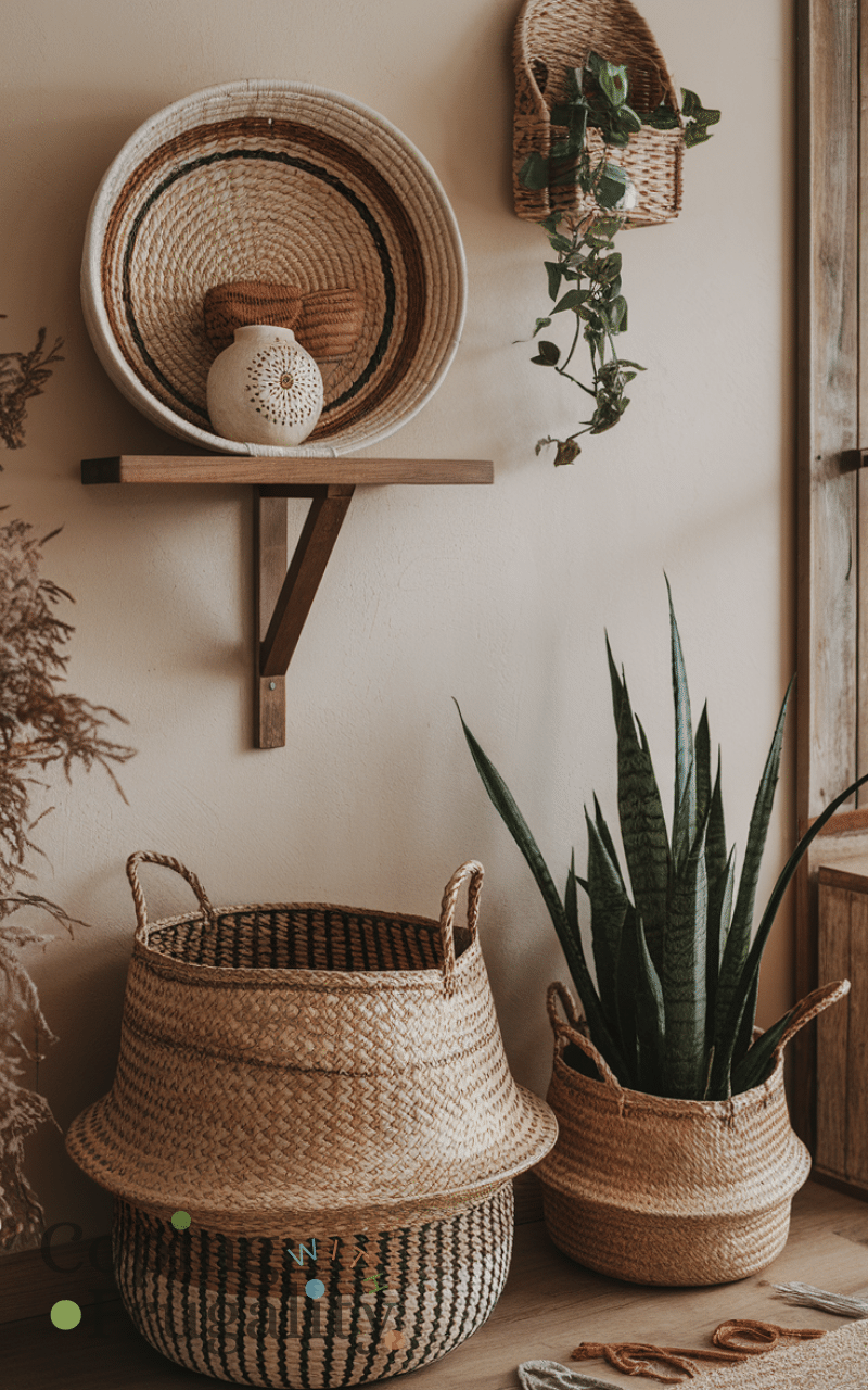 Woven baskets are functional and decorative. Use them for storage, plant covers, or wall displays. This thrift store decor finds styling on a budget idea turns simple, inexpensive pieces into stylish accents. Natural textures add warmth to any room and pair beautifully with modern or rustic décor. With just a little cleaning and creative placement, baskets can elevate shelves, corners, and entryways without spending a lot of money.