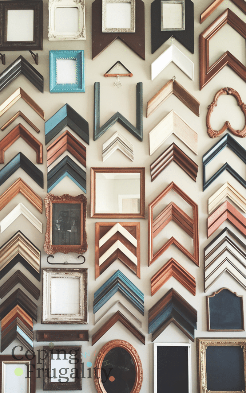 Scour thrift stores for vintage picture frames that add instant character to your walls. Mix and match sizes, colors, and textures for an eclectic gallery display. This thrift store decor finds styling on a budget idea lets you create a personalized art wall without paying for expensive pieces. Old frames can also be repurposed as mirrors or chalkboards, giving them a fresh function. With minimal cost and a bit of creativity, vintage frames transform any space, adding charm and personality while staying entirely budget-friendly.