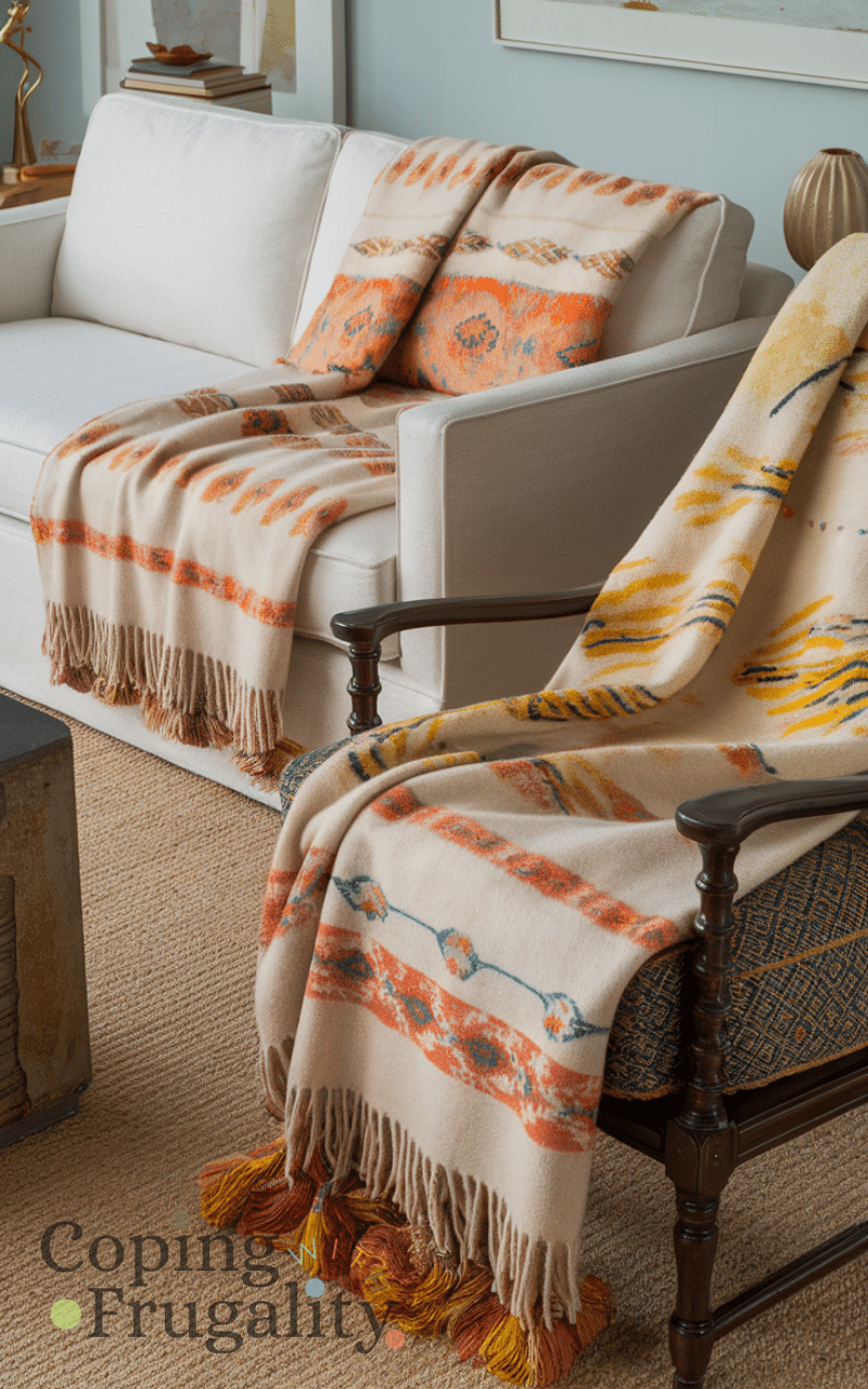 Find cozy throw blankets with interesting textures or patterns. Drape them over couches, chairs, or beds to add warmth and style. This thrift store decor finds styling on a budget idea makes it easy to refresh a room’s look without expensive décor purchases. Layering multiple throws creates a luxe, inviting vibe while still being practical. Choose colors that complement your existing décor to maximize their impact.