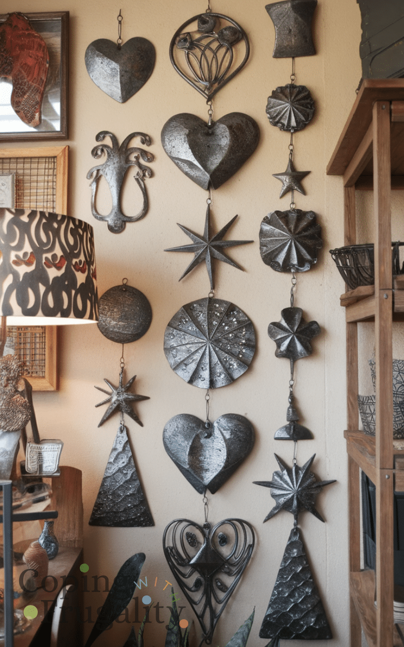 Metal art pieces can be found at thrift stores for affordable, stylish décor. This thrift store decor finds styling on a budget idea adds texture, dimension, and personality to walls. You can hang them as-is or combine several pieces for a larger statement. Metallic finishes reflect light and complement a variety of interior styles, making them a cost-effective way to elevate your décor.