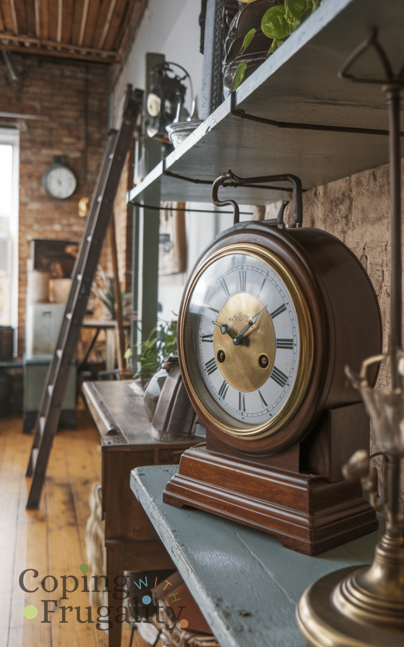 Vintage clocks serve as functional décor while adding timeless charm. This thrift store decor finds styling on a budget idea works well in kitchens, living rooms, or offices. Even if the clock doesn’t work, it can be used as a statement piece or paired with other thrifted finds. A little cleaning or minor repairs bring them back to life, giving your home personality without breaking your budget.