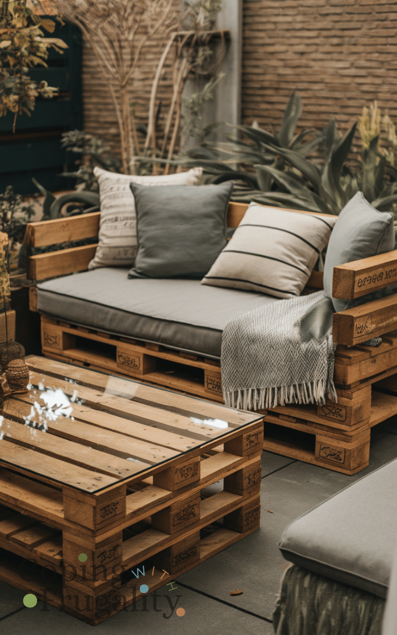 Using old pallets to make furniture is fun and eco-friendly and you can create sofas or tables and paint them in your favorite colors and add cushions and blankets for extra comfort and this DIY project saves money and adds a rustic charm and DIY pallet furniture is a perfect cozy patio decor idea on a budget you’ll love this summer.