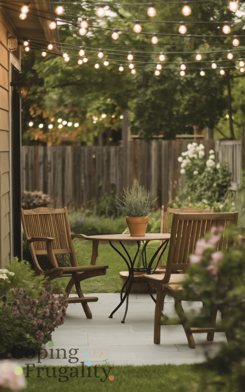 Adding string lights to your patio instantly creates a warm and cozy atmosphere and string lights are very affordable and easy to hang and you can wrap them around trees or drape them above your seating area and this idea makes your patio inviting and charming for summer evenings and using string lights is one of the best cozy patio decor ideas on a budget you’ll love this summer.