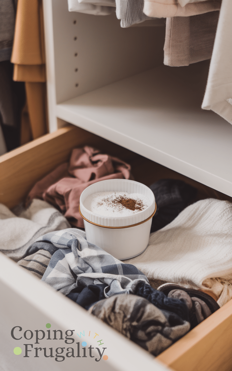 Vanilla and baking soda drawer freshener is a sweet natural cleaning solution on a budget that smell amazing because it uses baking soda to absorb odors and vanilla powder or extract to leave a pleasant scent and you place small containers in drawers closets and cupboards and your clothes and spaces smell delightful and fresh and this natural cleaning solution on a budget that smell amazing is simple to use and budget-friendly and it keeps your home smelling cozy and inviting without any chemicals.