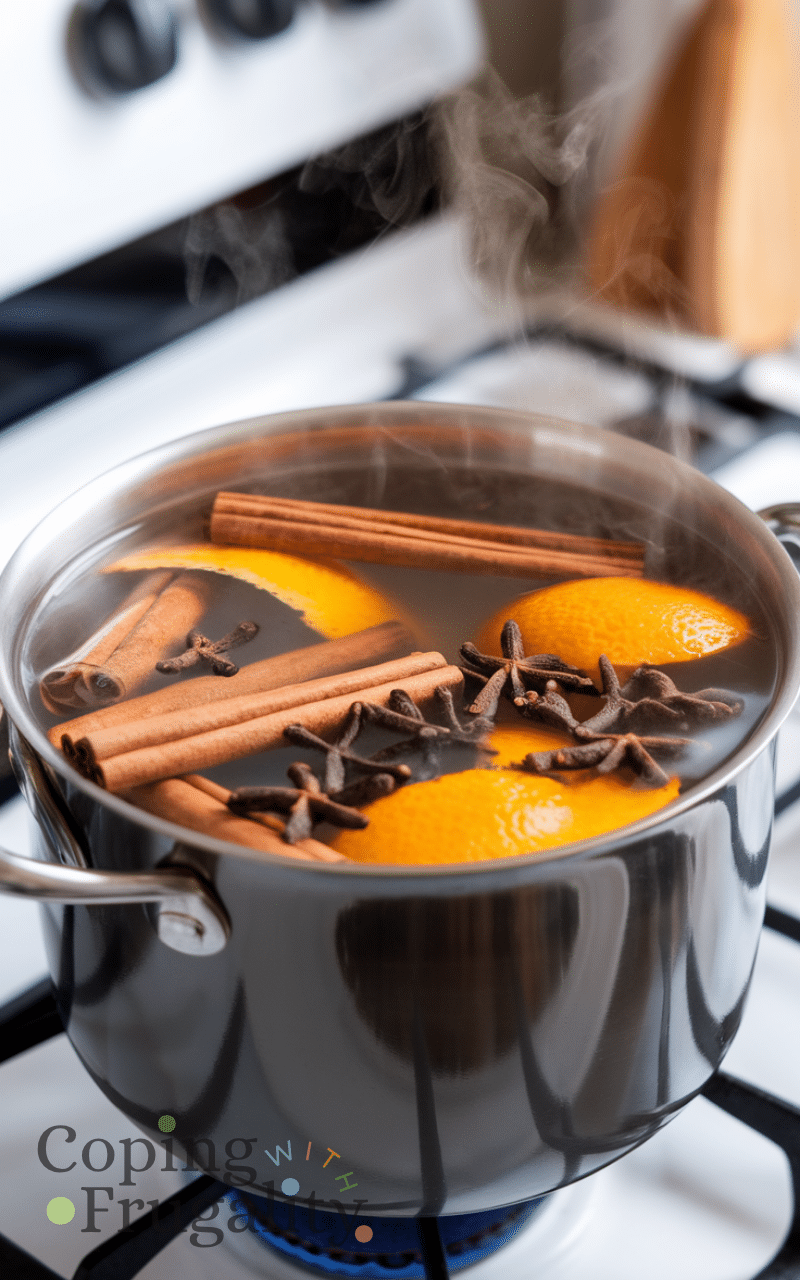 Cinnamon and clove air freshener is a warm natural cleaning solution on a budget that smell amazing because it uses whole spices simmered in water to fill your home with cozy fragrance and you can also add orange peels for extra citrus notes and it works as both a natural cleaner and a room refresher plus it is simple to make and budget-friendly and using this natural cleaning solution on a budget that smell amazing will keep your house smelling inviting and seasonal without artificial scents and it creates a comforting and aromatic atmosphere.