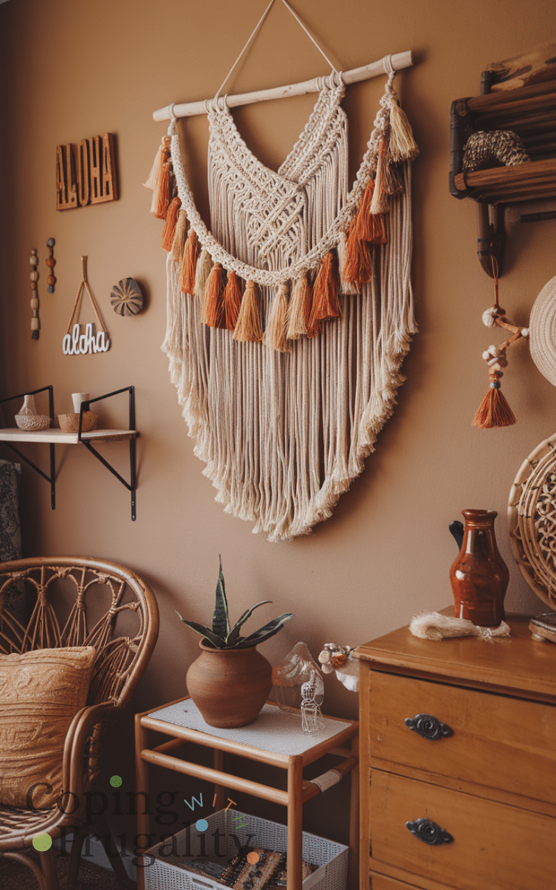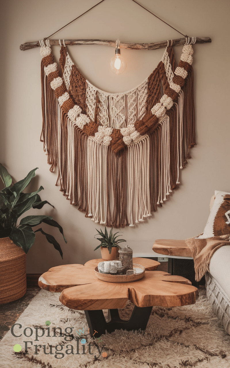 Creating your own macrame wall hangings is a fun way to personalize your home because you can choose colors and patterns that suit your style also making them yourself saves money and adds a handcrafted touch that looks professional and elegant at the same time and hanging these pieces in your living room or bedroom instantly elevates the decor giving your home a unique and artistic feel and this DIY project perfectly represents boho home decor ideas on a budget that look expensive.