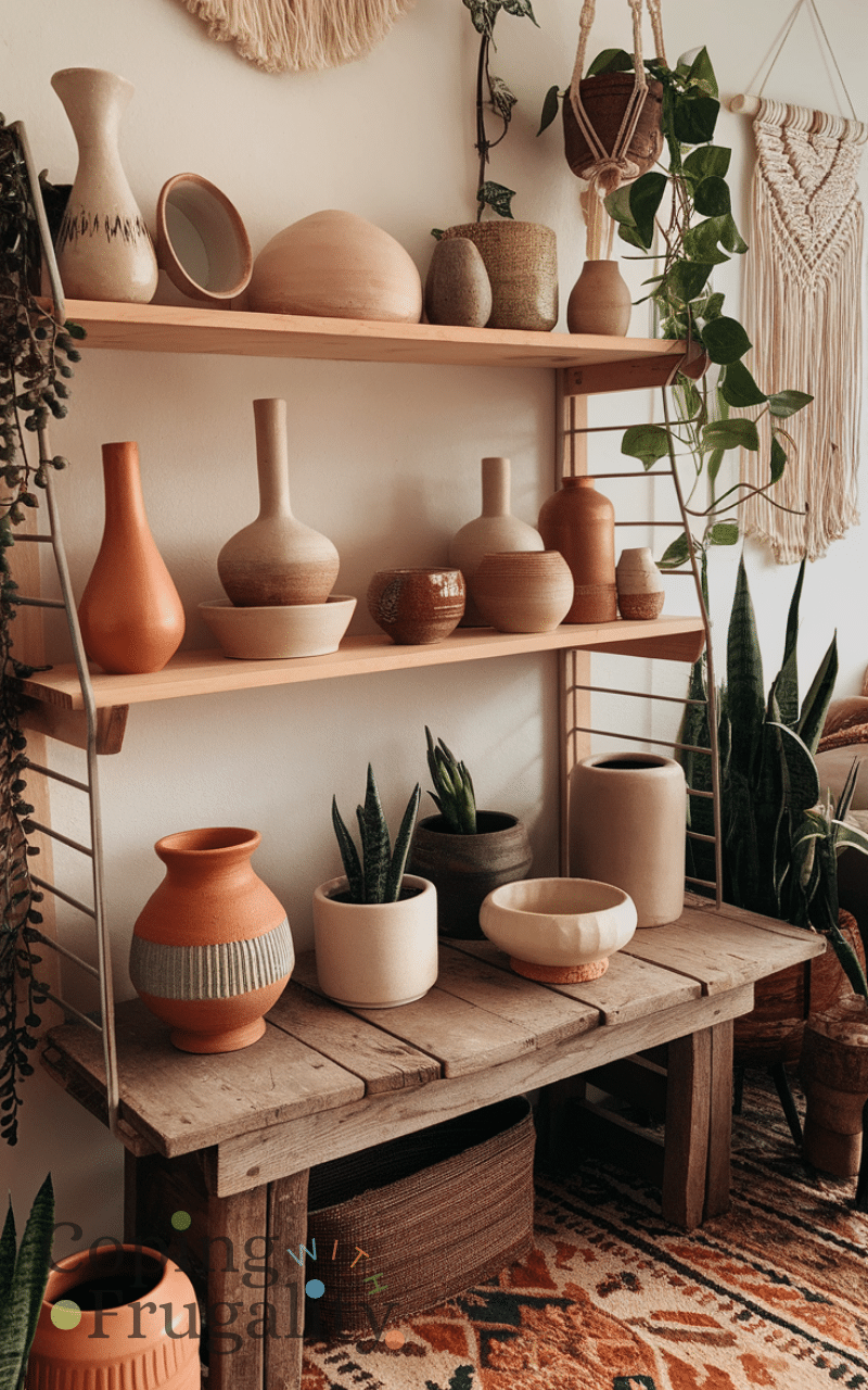 Incorporating handmade ceramics like vases bowls and planters gives a unique touch to your space because handcrafted pieces bring personality and authenticity and supporting artisans makes your home decor more meaningful while remaining affordable also arranging ceramics on shelves or tables creates visual interest and adds a luxurious feel making this a standout boho home decor idea on a budget that looks expensive.