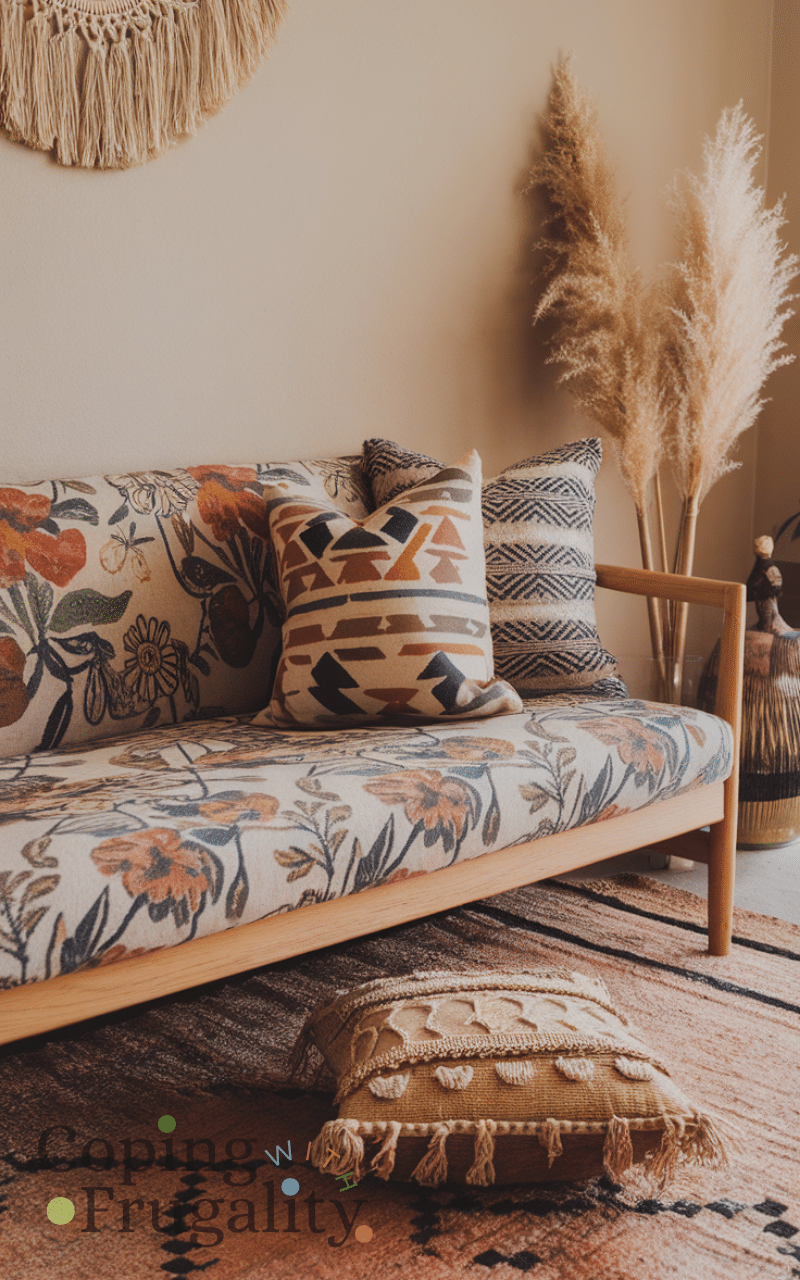 Using colorful throw pillows can transform your sofa or bed because mixing patterns and textures adds warmth and personality and layering them creates a comfortable and inviting atmosphere also selecting budget-friendly pillows in vibrant shades instantly enhances the boho aesthetic without spending much making your living space look thoughtfully styled and this simple trick ranks high among boho home decor ideas on a budget that looks expensive.