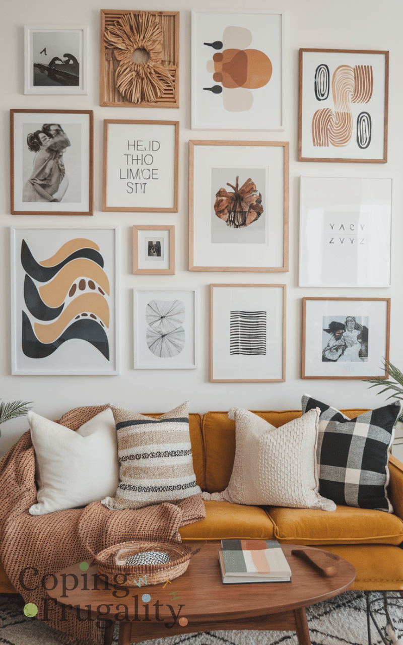 Creating a wall art collage using prints and inexpensive frames can make a statement in your room because arranging different shapes colors and textures adds interest and personality also choosing pieces that reflect your style makes your space feel curated without spending a fortune and layering photos posters and artworks in a cohesive arrangement transforms blank walls into eye-catching focal points giving your home a stylish boho feel that looks more luxurious than it actually is making this an essential boho home decor idea on a budget that looks expensive.