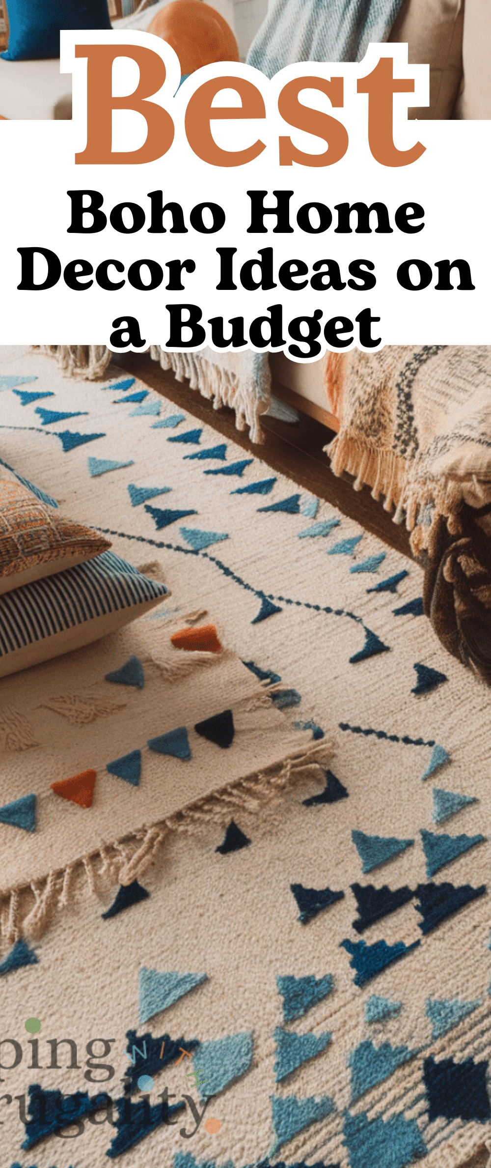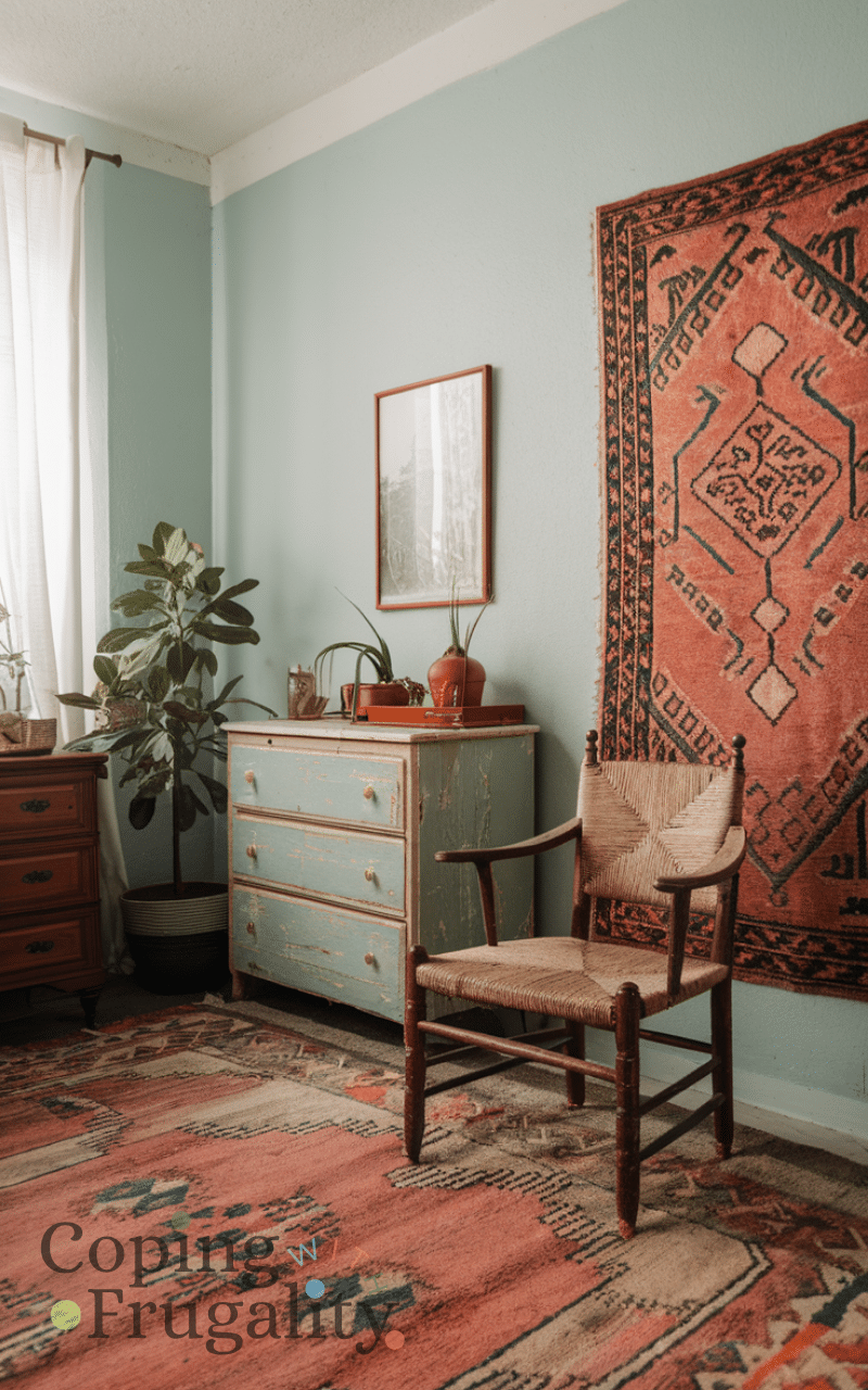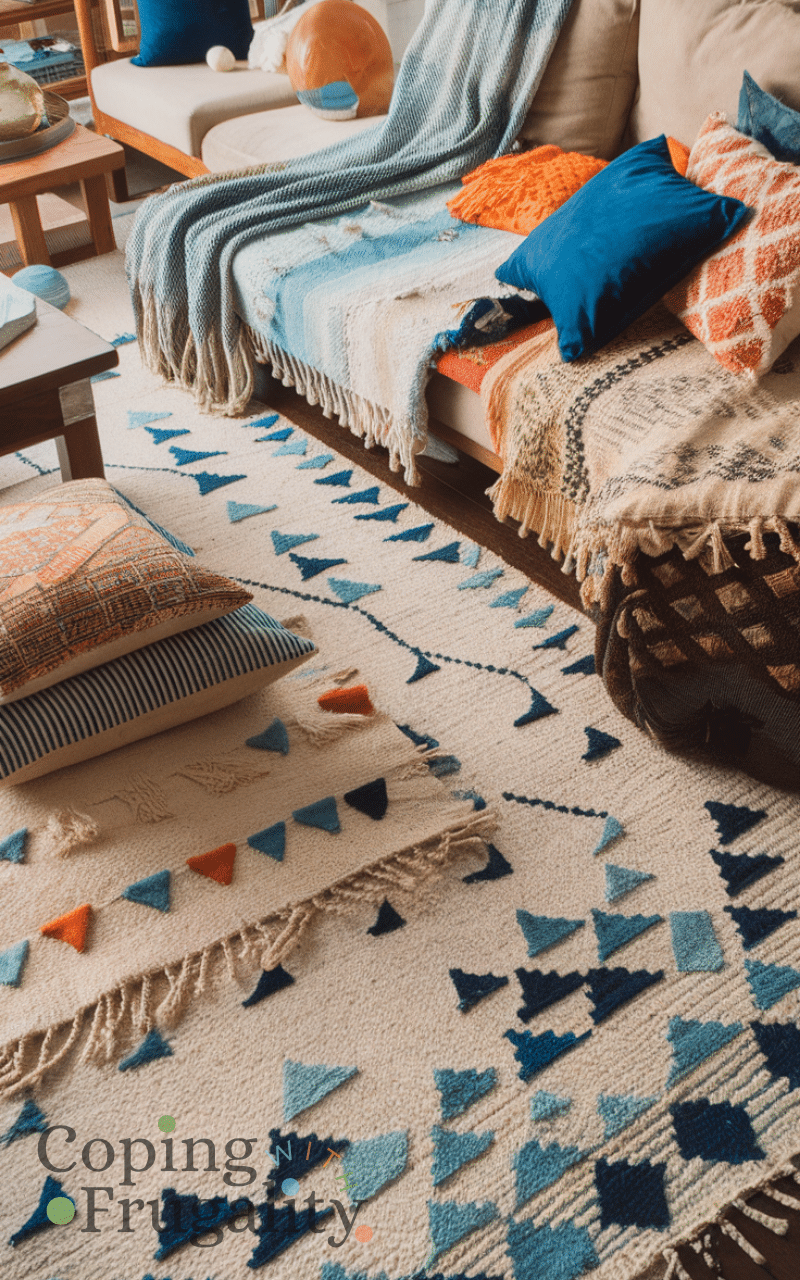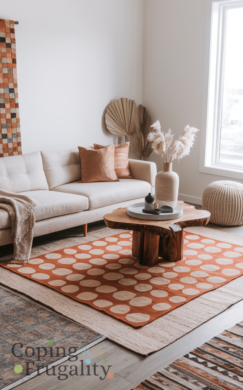 Using layered rugs transforms any floor space because combining different textures colors and patterns adds dimension and style and it is a cost-effective way to make a room feel designer-level also mixing small rugs on top of larger ones creates visual interest while staying boho and cozy giving your home a high-end feel and this remains a favorite boho home decor idea on a budget that looks expensive.