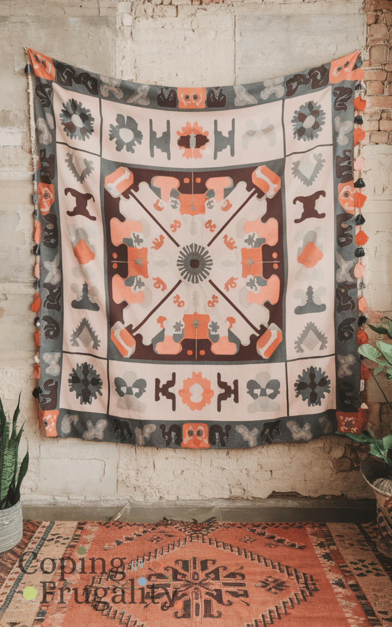 Hanging a wall tapestry is an easy way to make a bold statement because it covers large spaces with color and pattern while being affordable also tapestries add a soft cozy texture to walls and instantly give a room personality and depth making your home feel curated stylish and artistic making this a top boho home decor idea on a budget that looks expensive.