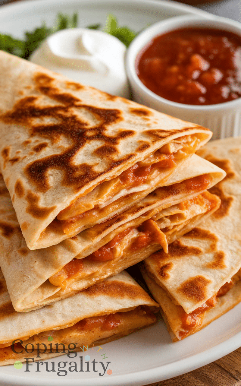 Crispy on the outside and cheesy on the inside these chicken quesadillas are definitely one of the most delicious family meal ideas on a budget that kids will love and you can make them quickly by using leftover chicken and some shredded cheese between tortillas and then cook them in a pan until golden and serve them with salsa or sour cream and your kids will surely enjoy every gooey bite.