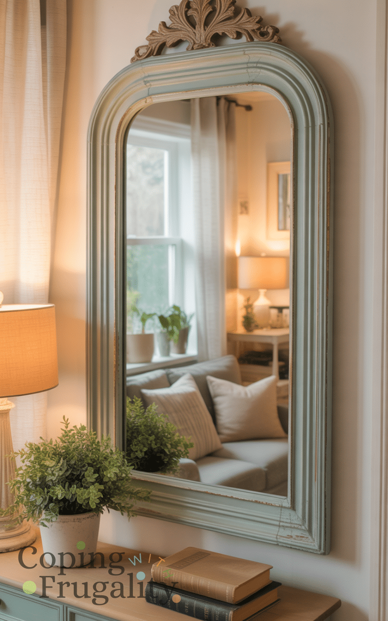 Mirrors are often overlooked thrift store treasures. For DIY Decor from Thrifted Items on a Budget, repaint or distress the mirror frame to match your home’s style. A fresh coat of paint can make an old mirror look brand new. Mirrors also help reflect light and make small spaces feel larger. This affordable idea works beautifully in entryways, bedrooms, and living rooms, adding both function and elegance.