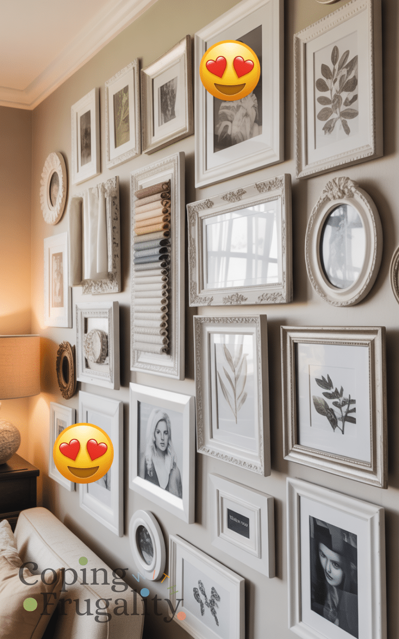 Creating a gallery wall is one of the easiest DIY Decor from Thrifted Items on a Budget projects you can do. Look for mismatched frames at thrift stores, then unify them with one paint color or wood stain. You can display art prints, family photos, fabric scraps, or even wallpaper samples. This idea adds personality and warmth to any room while keeping costs low. Thrifted frames often cost very little, yet once styled together, they look intentional and high-end. It’s a perfect way to decorate large empty walls without spending much money.