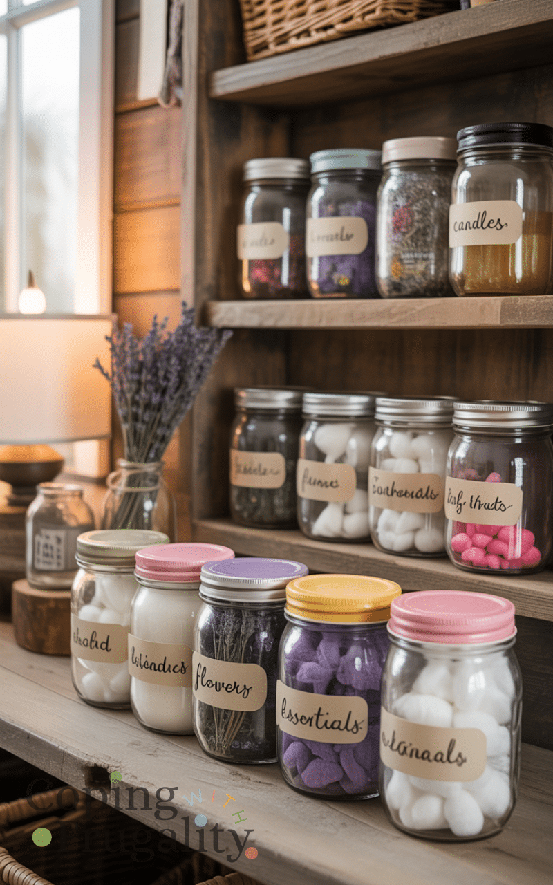 Glass jars from thrift stores are perfect for DIY Decor from Thrifted Items on a Budget. Use them to store small items like candles, flowers, or bathroom essentials. You can paint the lids or add labels for a cohesive look. This idea combines organization with affordable style.
