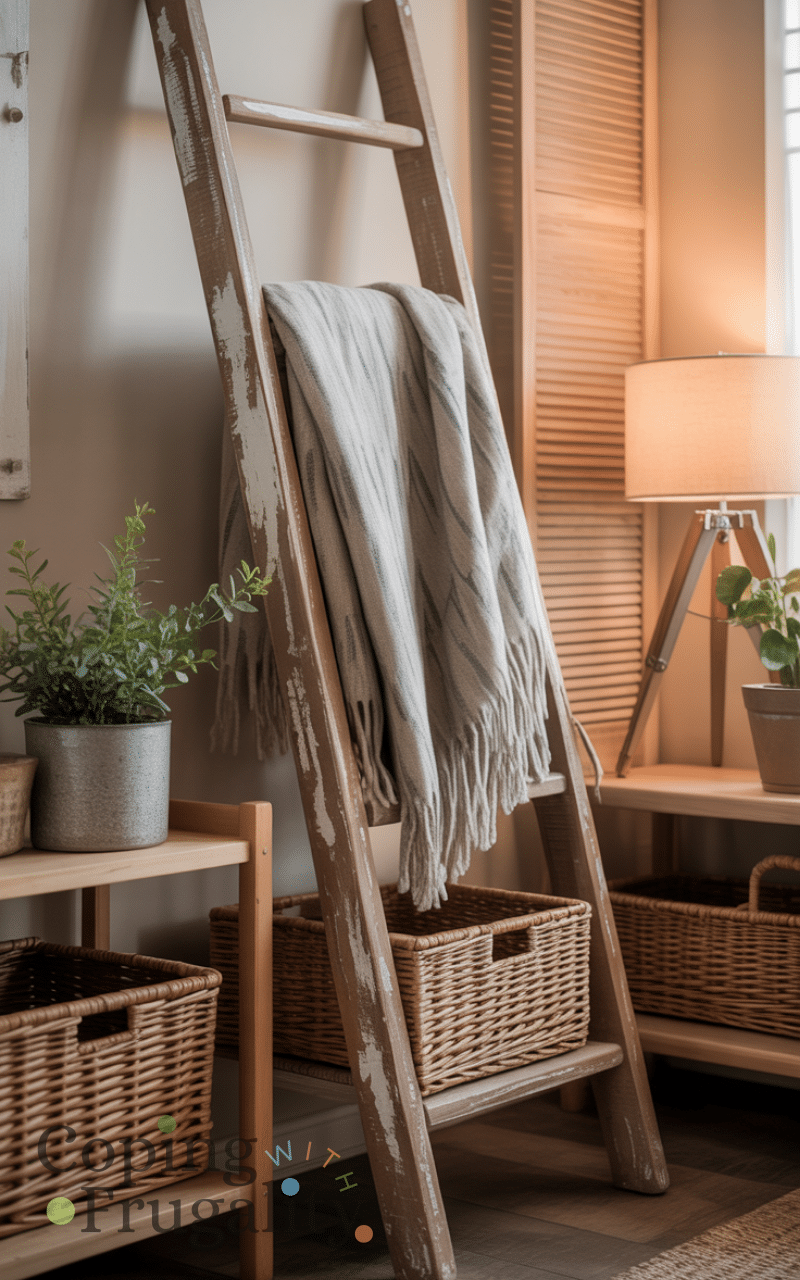 Old ladders are popular DIY Decor from Thrifted Items on a Budget finds. Use them as blanket holders, shelving units, or towel racks. With a bit of cleaning or paint, thrifted ladders become stylish and functional decor pieces. They add height and visual interest to any room.
