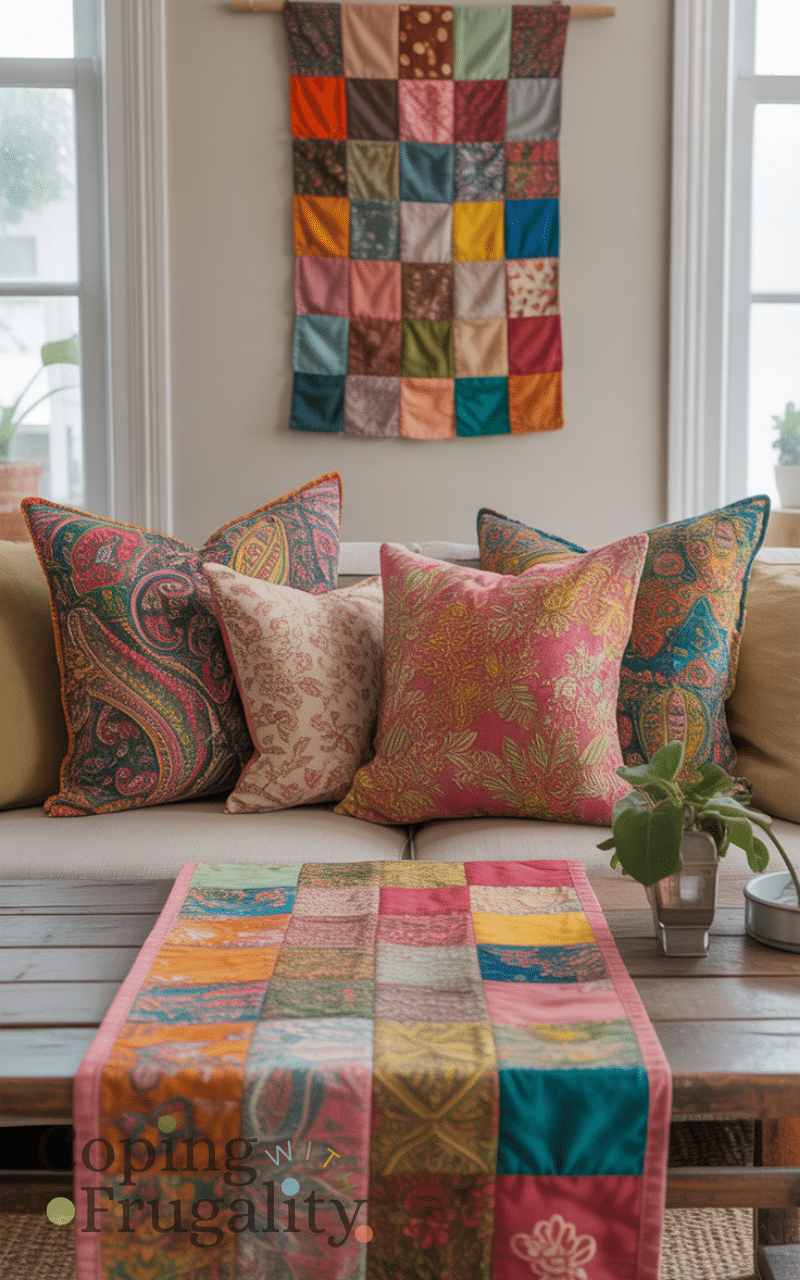 Fabric from thrift stores can be used for pillows, table runners, or wall hangings. This DIY Decor from Thrifted Items on a Budget idea allows you to add color and texture cheaply. Even small fabric pieces can make a big impact when styled thoughtfully. It’s an easy way to refresh your decor seasonally.