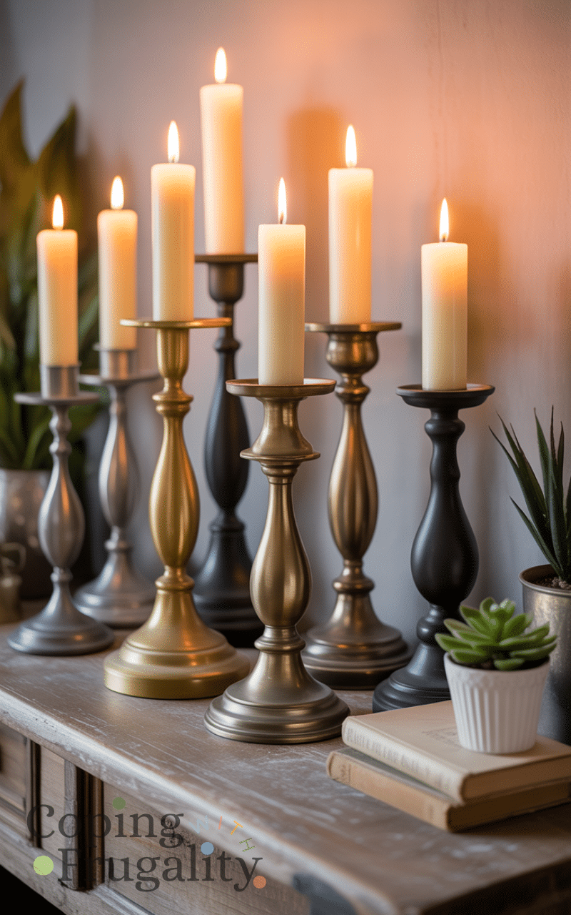 Old candlesticks can be updated with paint or metallic finishes for stylish DIY Decor from Thrifted Items on a Budget. Group them together on tables or mantels for a cozy atmosphere. Thrifted candlesticks are usually very cheap and easy to transform, making them a great way to add elegance without overspending.