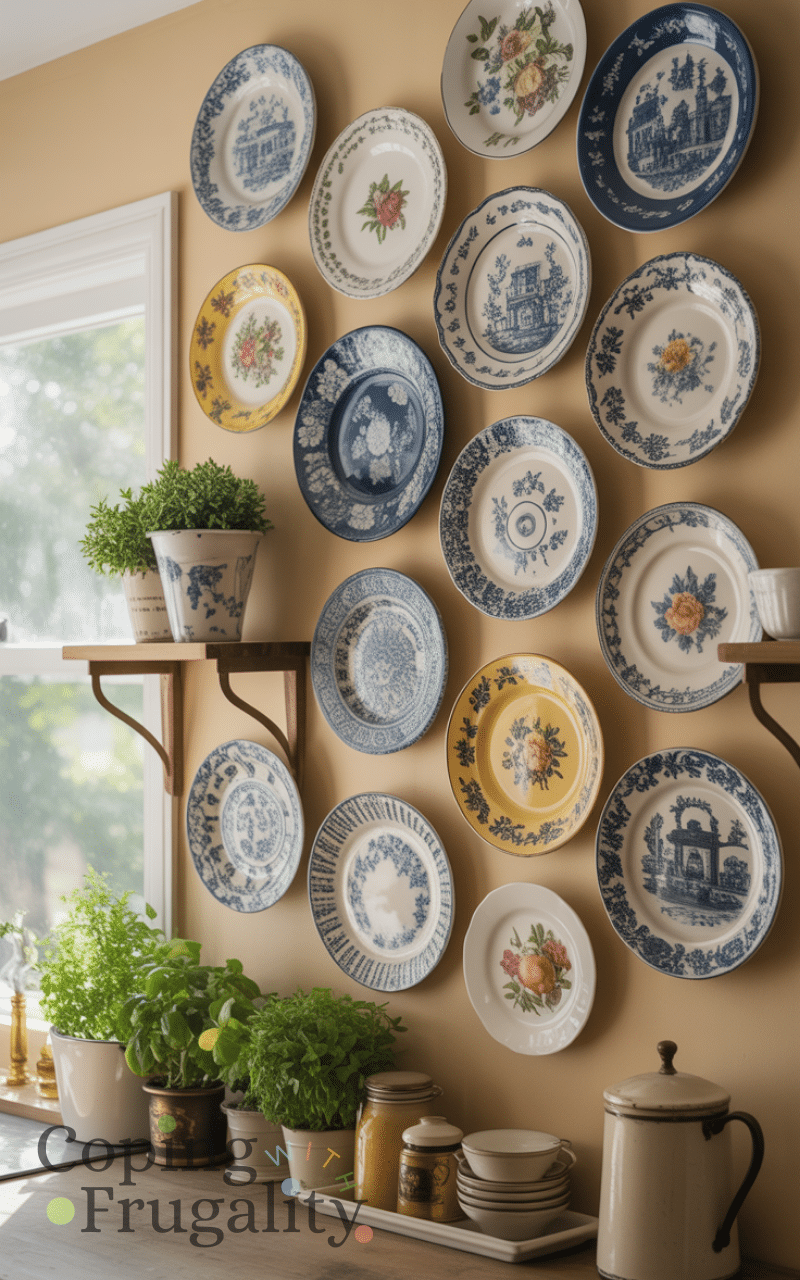 Decorative plates from thrift stores are affordable and perfect for DIY Decor from Thrifted Items on a Budget. Hang them on the wall or display them on shelves for a classic look. Mixing patterns and colors adds personality, while thrifted prices keep it budget-friendly. This idea works especially well in kitchens and dining areas.