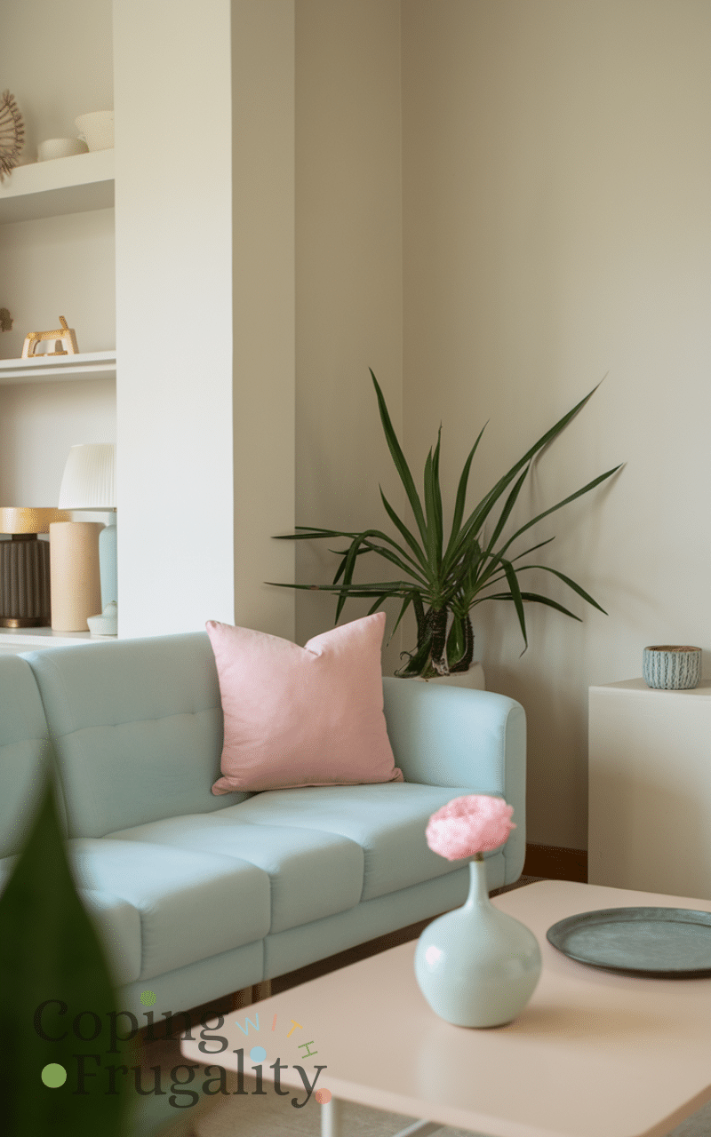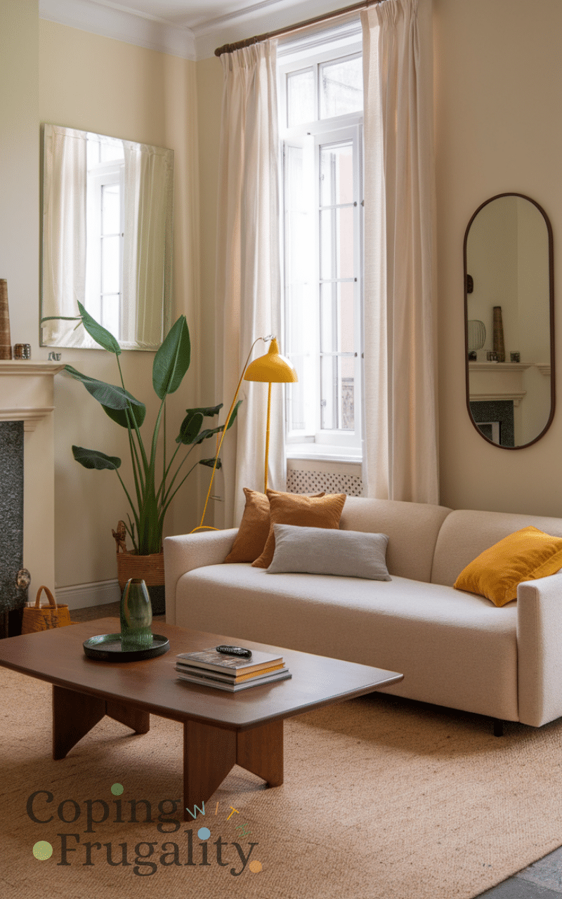 An easy early spring living room refresh on a budget can use mirrors to amplify natural light and make your space feel larger. Place a mirror across from a window to bounce brightness around the room. This easy early spring living room refresh on a budget works beautifully in small living rooms that need a more open, airy feel. Even one well-placed mirror can transform the atmosphere completely.