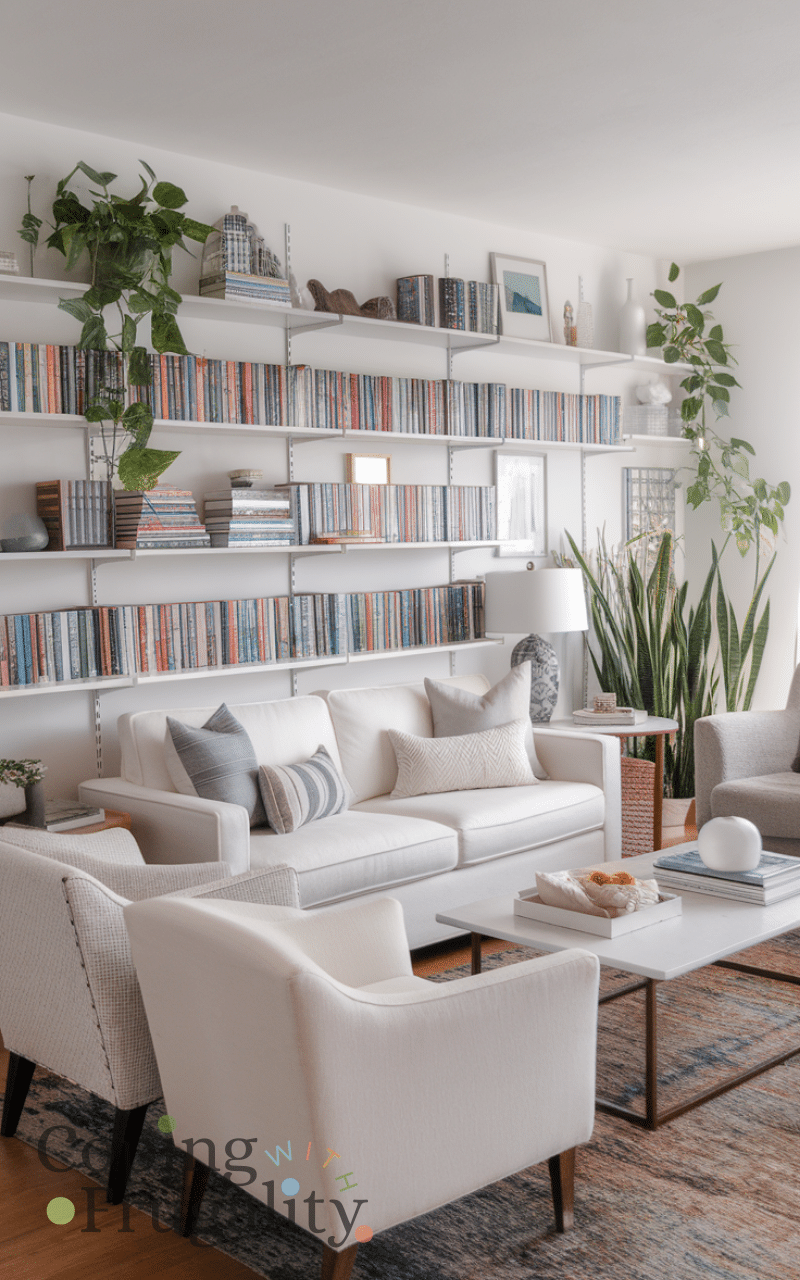 An easy early spring living room refresh on a budget can shine through styled bookshelves that feel balanced and intentional. Rearrange books by color, add plants, and remove unnecessary clutter. This easy early spring living room refresh on a budget makes your space look curated instead of chaotic. Shelves become decorative focal points rather than storage spots.