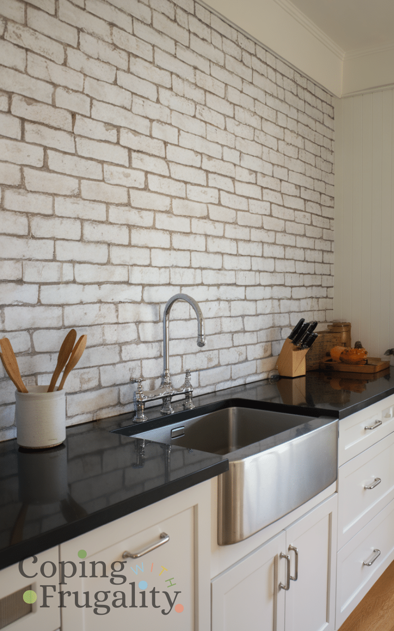 Faux brick panels create an industrial or rustic look and fit perfectly into the Best Easy Kitchen Backsplash Ideas on a Budget list. These lightweight panels are much cheaper than real brick and easier to install. They can be painted white for a modern look or left natural for warmth. Faux brick adds character and depth, especially in small kitchens that need a bold design element.