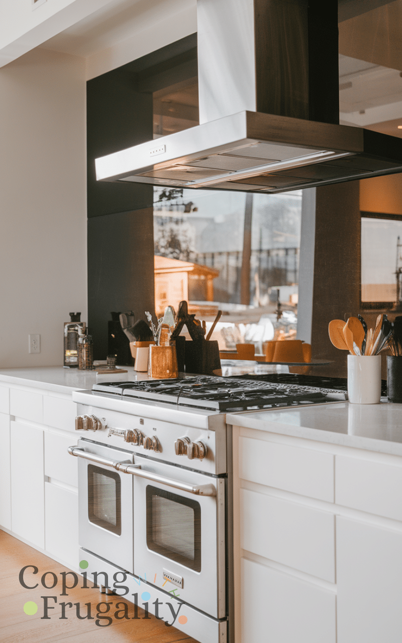 A single glass panel behind the stove or sink is sleek and modern and fits perfectly into the Best Easy Kitchen Backsplash Ideas on a Budget. Glass is easy to clean and reflects light, making the kitchen feel bigger. Using one panel instead of tiles keeps costs low while still achieving a high-end finish.