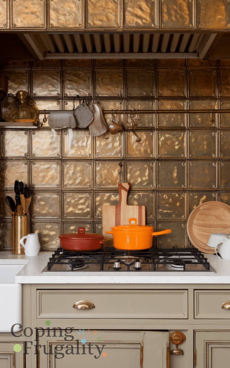 Tin-style ceiling tiles repurposed as a backsplash are creative and stylish, ranking high among the Best Easy Kitchen Backsplash Ideas on a Budget. They add vintage charm and texture and are easy to cut and install. These tiles can be painted to match your kitchen color scheme and work well in both classic and eclectic designs.