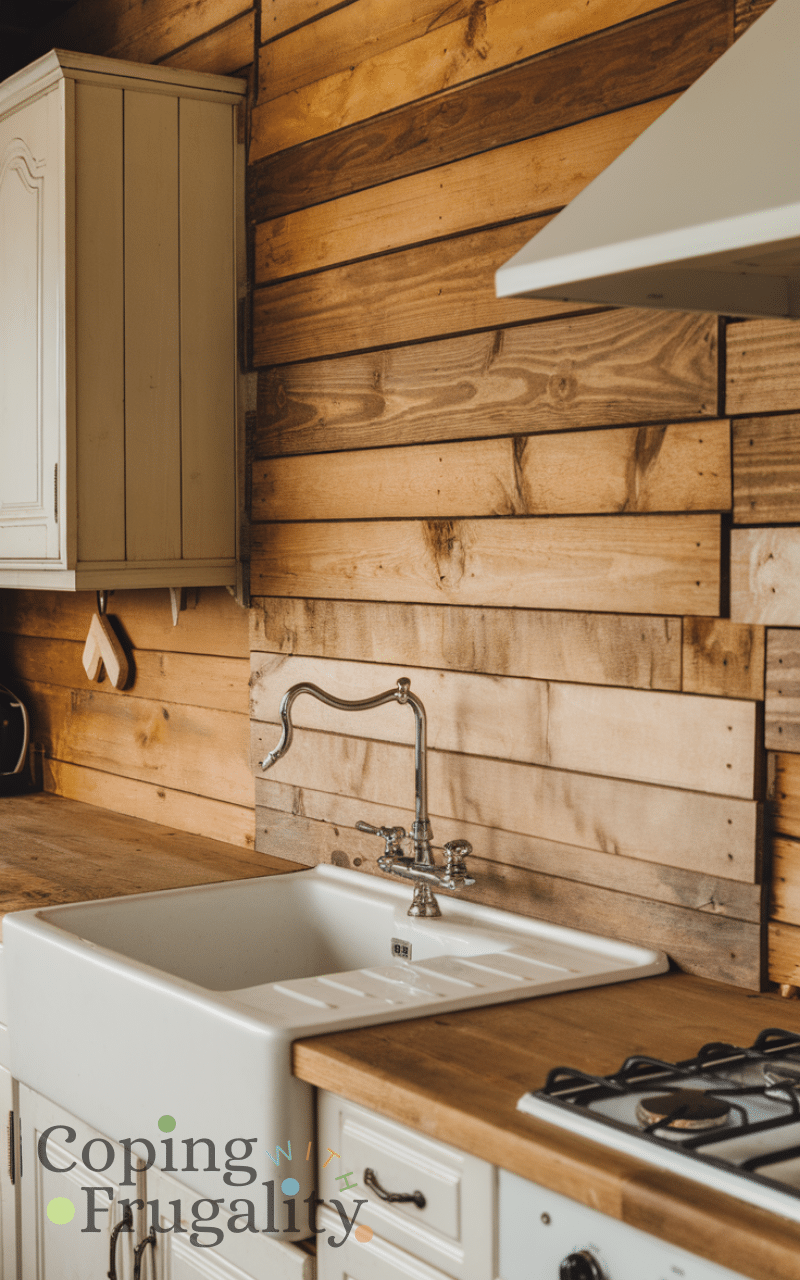 Using reclaimed or pallet wood is a warm and eco-friendly option within the Best Easy Kitchen Backsplash Ideas on a Budget. When properly sealed, wood can work well as a backsplash and adds natural texture. This idea is perfect for rustic, boho, or farmhouse kitchens. Reclaimed wood is often inexpensive or free and gives your kitchen a unique, handcrafted feel.
