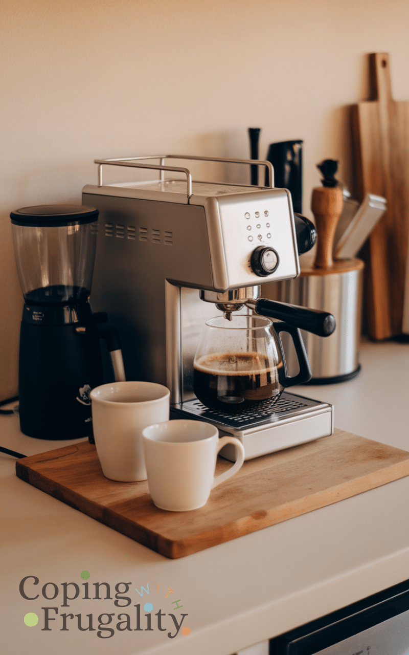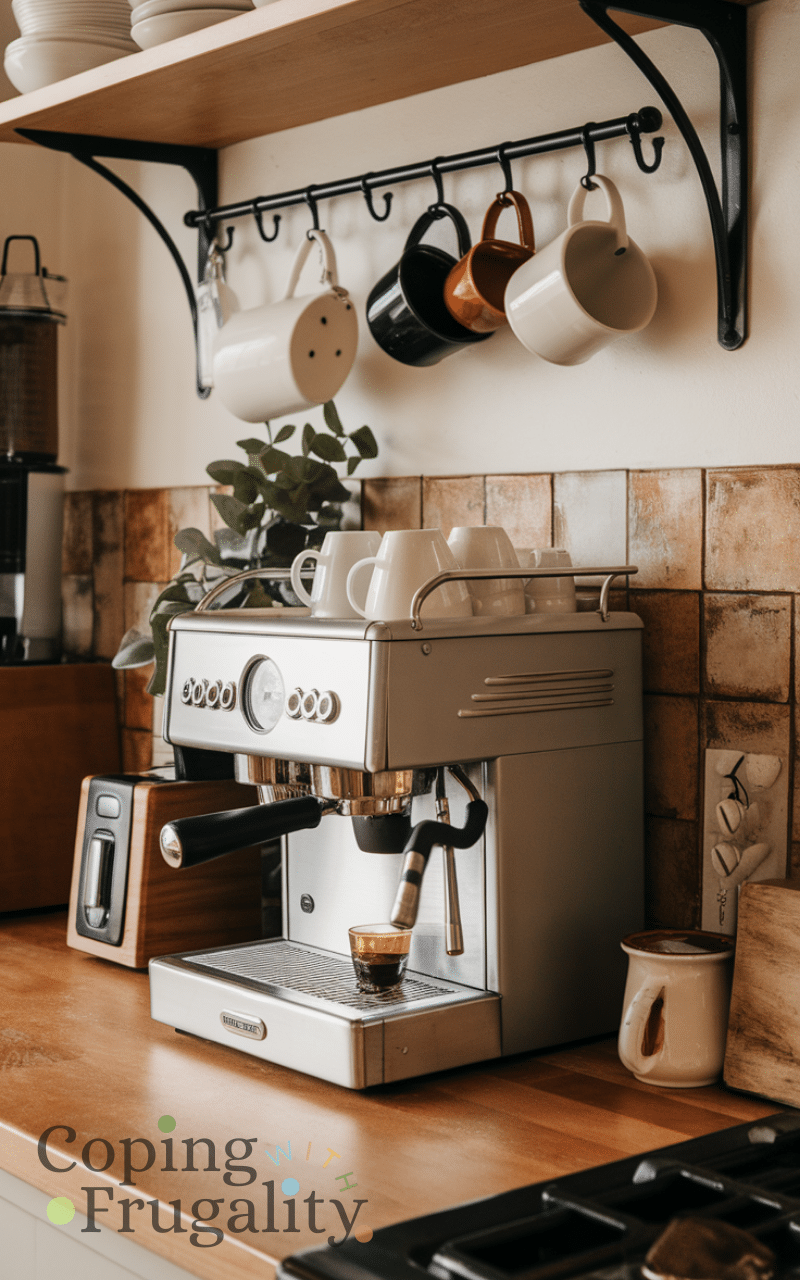 A minimal approach works perfectly for a Kitchen Coffee Station Setup on a Budget. Only display what you use daily and store the rest. Fewer items mean less spending and a cleaner look. A simple coffee machine, a few mugs, and basic accessories can look stylish when arranged thoughtfully. Minimalism saves money and keeps your kitchen feeling calm and organized.