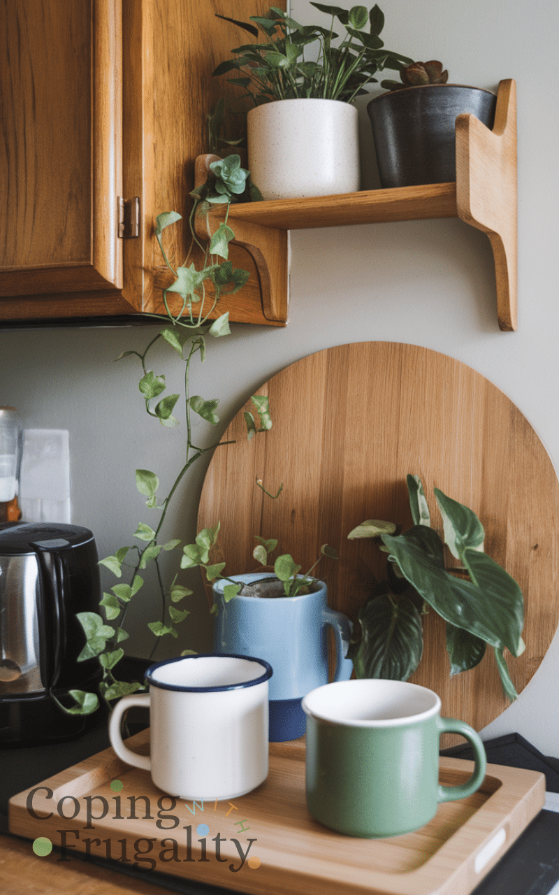 Plants bring life to a Kitchen Coffee Station Setup on a Budget. A small real plant or a good-quality faux one adds freshness and warmth. You don’t need anything fancy—even a simple herb or mini plant works. Greenery softens the space and makes your coffee corner more inviting, all while staying affordable and low maintenance.