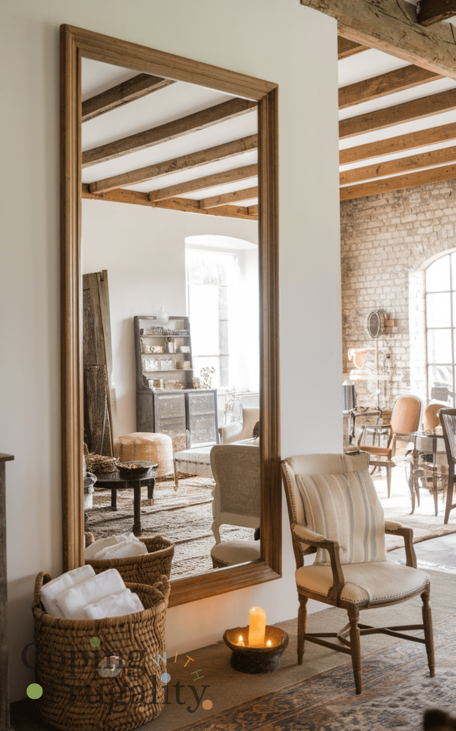 Farmhouse style mirrors are one of the best farmhouse decor ideas on a budget because they reflect light and make your home look brighter and larger You can find affordable mirrors with wooden frames or create your own by painting and sanding an old one This idea works beautifully in entryways living rooms and bathrooms because it adds both charm and function to your space The wood tones of the frame create that country feeling that farmhouse design is known for while giving your home a more open look This farmhouse decor idea on a budget brings elegance and simplicity without extra cost.