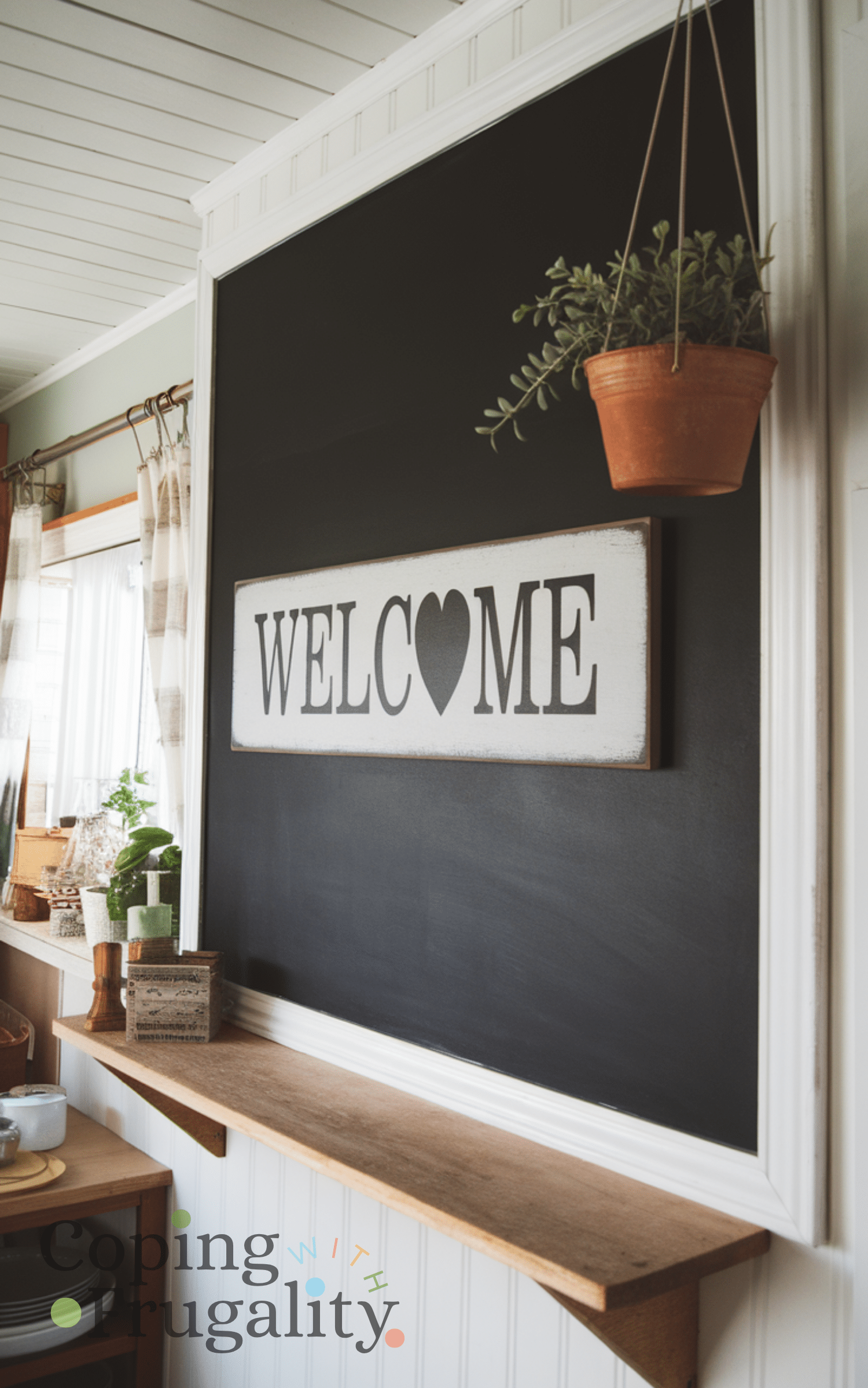 Chalkboard wall decor is one of the most creative farmhouse decor ideas on a budget because it allows you to personalize your space You can paint a section of your kitchen or hallway wall with chalkboard paint or use an old frame to make a chalkboard sign It’s perfect for writing grocery lists quotes or messages that make your home feel more lived in This farmhouse decor idea on a budget combines charm and practicality while letting you show your creativity.