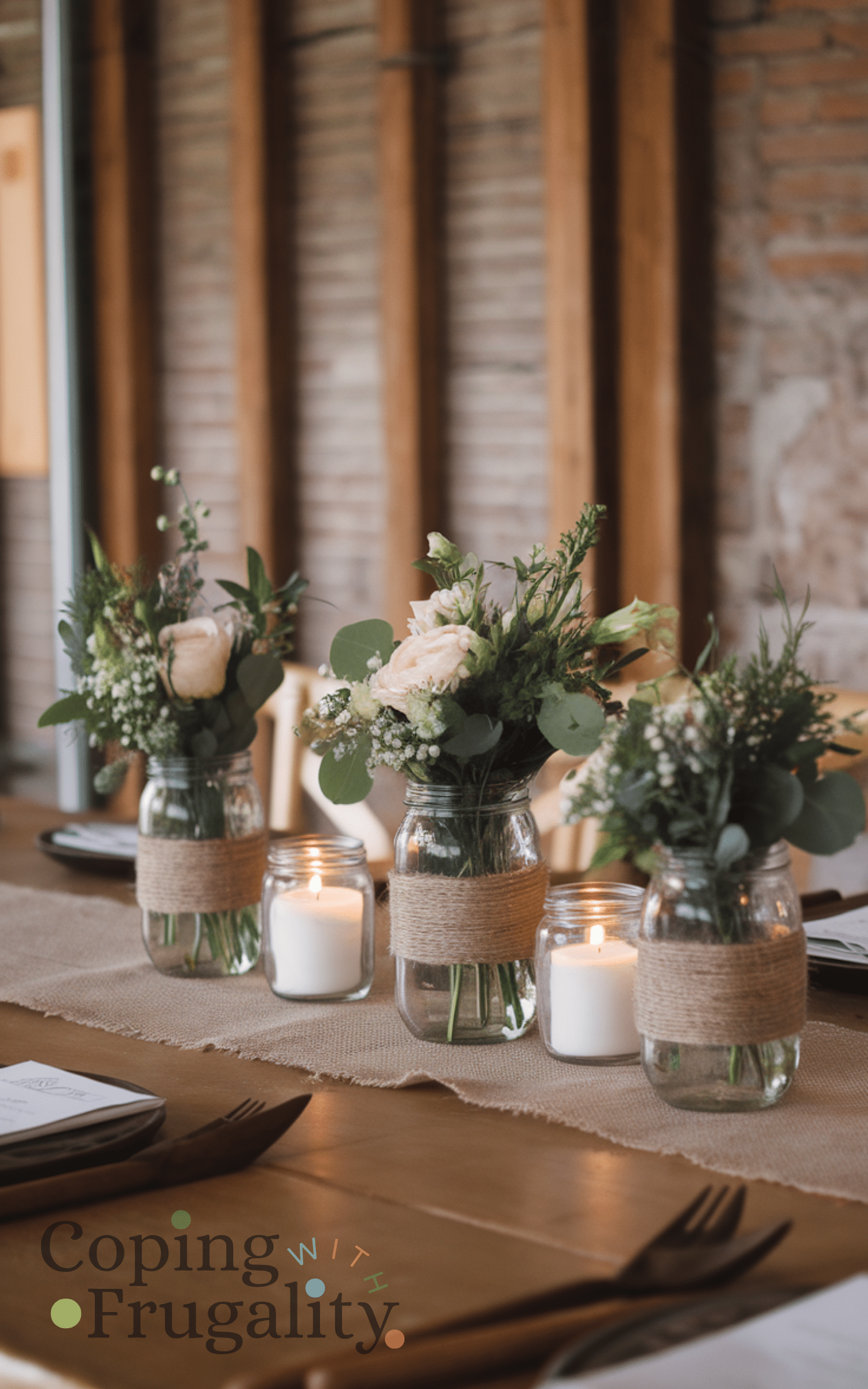 Mason jar centerpieces are one of the easiest farmhouse decor ideas on a budget because they let you create a beautiful table setting without spending much You can fill them with flowers greenery or candles to add a soft and inviting glow to your dining space This touch gives your home that cozy country charm that everyone loves and it can be changed easily for every season or occasion You can wrap jute twine around the jars or paint them with chalk paint for a vintage look that feels warm and natural This farmhouse decor idea on a budget is affordable creative and fits perfectly in any rustic interior.