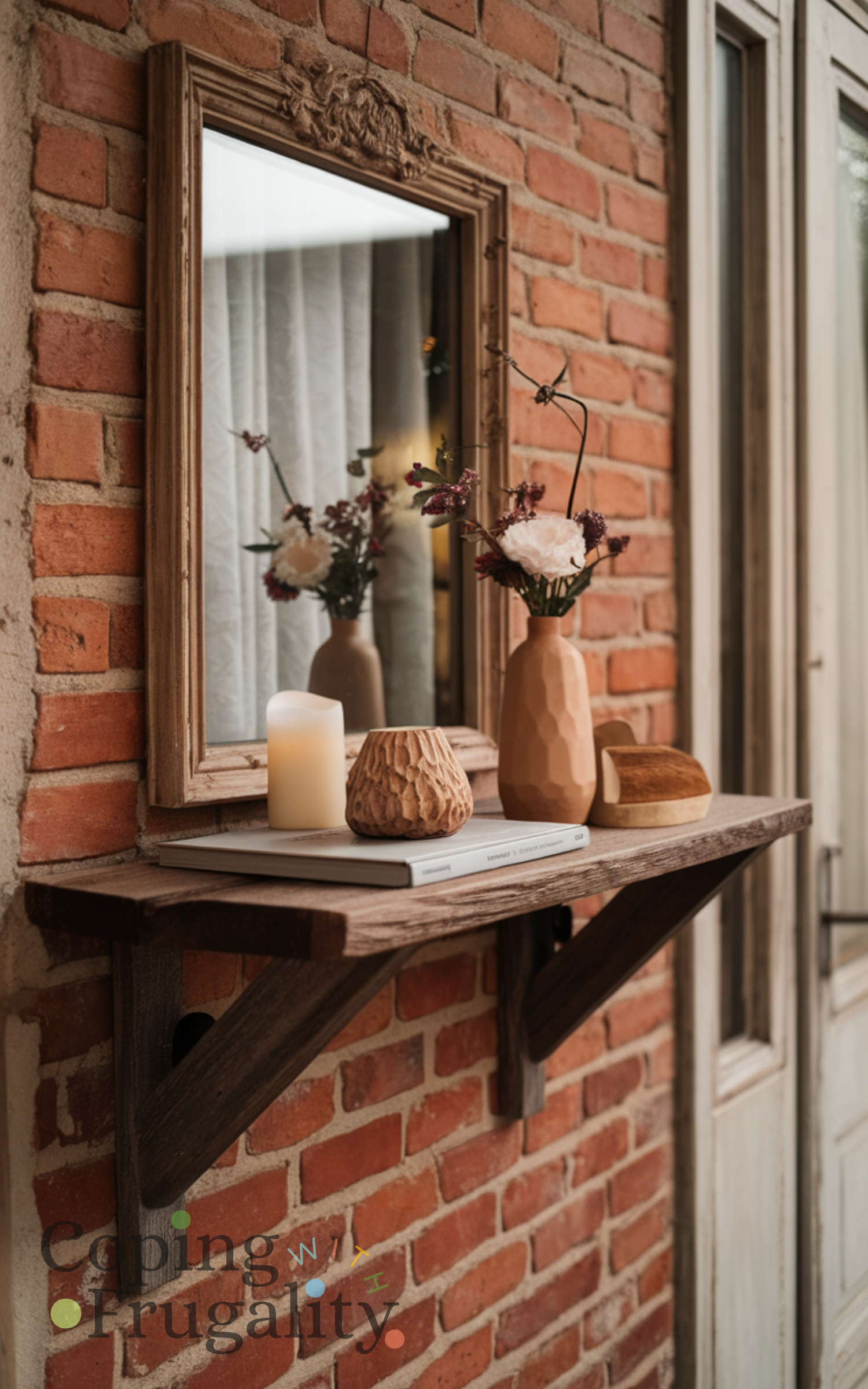 Rustic wooden shelves are one of the most charming farmhouse decor ideas on a budget because they bring both function and beauty to any space and they are easy to create using reclaimed or inexpensive wood You can cut a few planks of wood to your preferred size and mount them with simple brackets which instantly adds that rustic farmhouse touch These shelves are perfect for displaying jars books plants or candles and they give your room a warm and lived in feel The best part is that you can stain or paint them in any shade that matches your interior and it will still look naturally elegant and cozy This farmhouse decor idea on a budget is stylish and practical for organizing your home while keeping that classic rustic vibe.