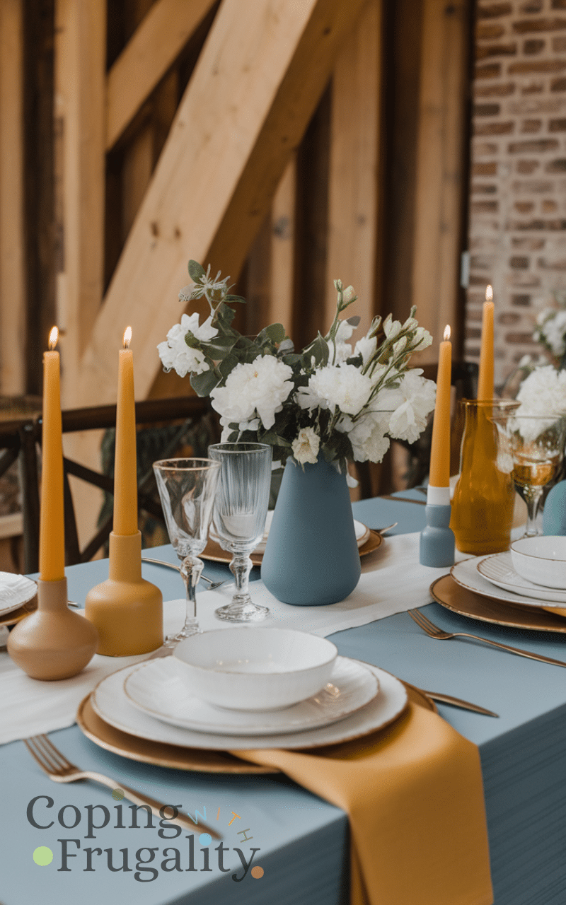 French blue and mustard yellow create a bold and artistic contrast and they remain one of the most playful French Blue Wedding Color Palettes on a Budget because mustard accessories and décor pieces are easy to source from everyday shops and online stores and this palette suits modern couples who want a creative and happy color scheme without overspending and you can decorate with French blue linens mustard candles simple flowers and geometric décor pieces for a unique and cheerful effect and this theme works beautifully for outdoor weddings and casual venues where bright colors shine under natural light and if you want French Blue Wedding Color Palettes on a Budget that are lively and unforgettable this pairing is an exciting choice.