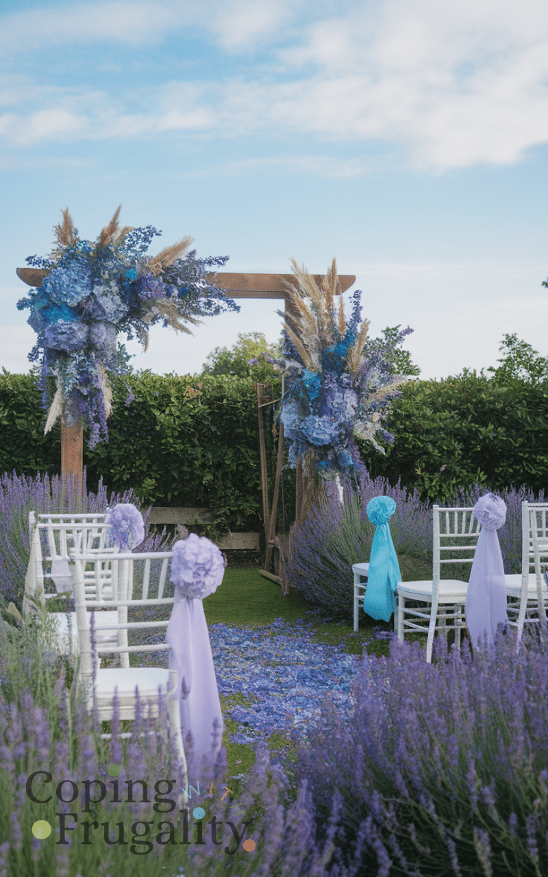 French blue and lavender form a soft dreamy theme and they make one of the most magical French Blue Wedding Color Palettes on a Budget because lavender is inexpensive and can be bought dried or fresh in bulk which saves money for couples planning a romantic celebration and the mix of these two gentle tones creates a calm and airy atmosphere that suits garden weddings boho events and countryside celebrations beautifully and you can use lavender bouquets French blue ribbons lavender filled jars and simple table linens for a cohesive look that feels peaceful and enchanting and this palette feels unique without being expensive and if you want French Blue Wedding Color Palettes on a Budget that are floral and serene this option is perfect.