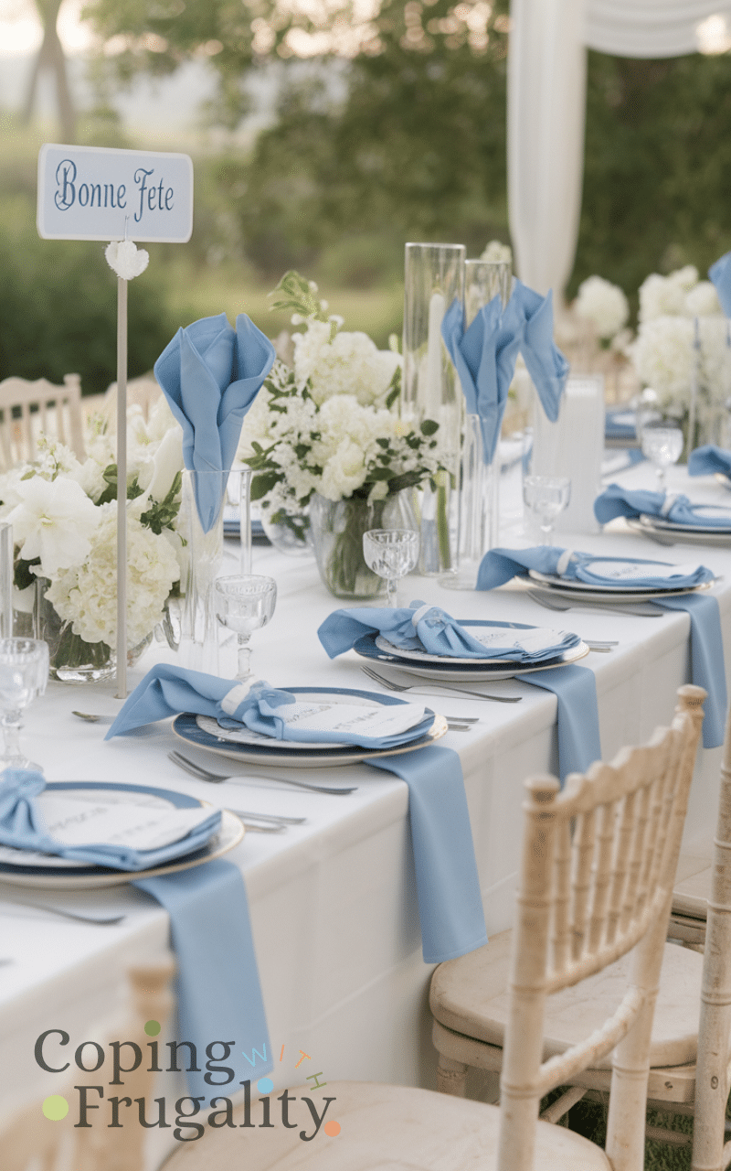 So I started pulling together ribbons candles and tiny floral touches and the whole process felt just like when I played with Pillow Ideas for a White Couch and mixed colors and textures to bring warmth into my home and I also felt the same peaceful creativity I had in my Modern Boho Living Room because the charm of a French blue palette comes from softness layering and heart and now I feel sure that anyone can create a stunning French Blue Wedding Color Palettes look that feels dreamy personal and full of gentle elegance even with simple affordable pieces that still shine beautifully.